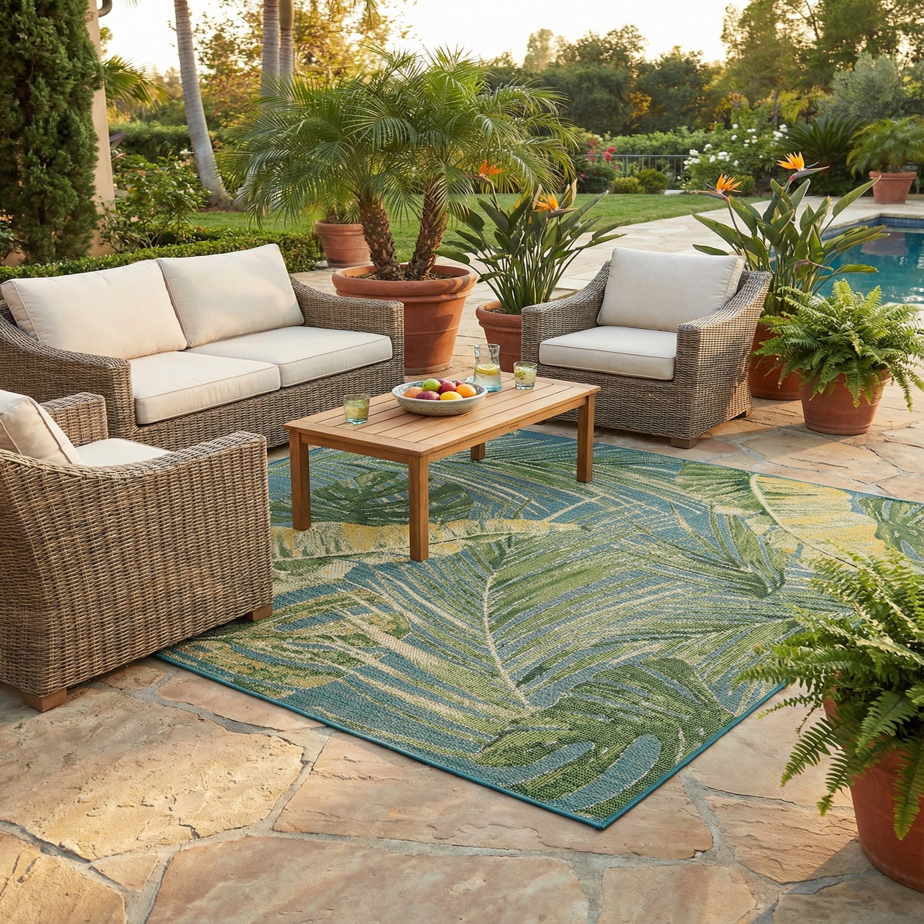 Detail image of 7' 10 x 7' 10  Washable Botanical Indoor / Outdoor Square Rug