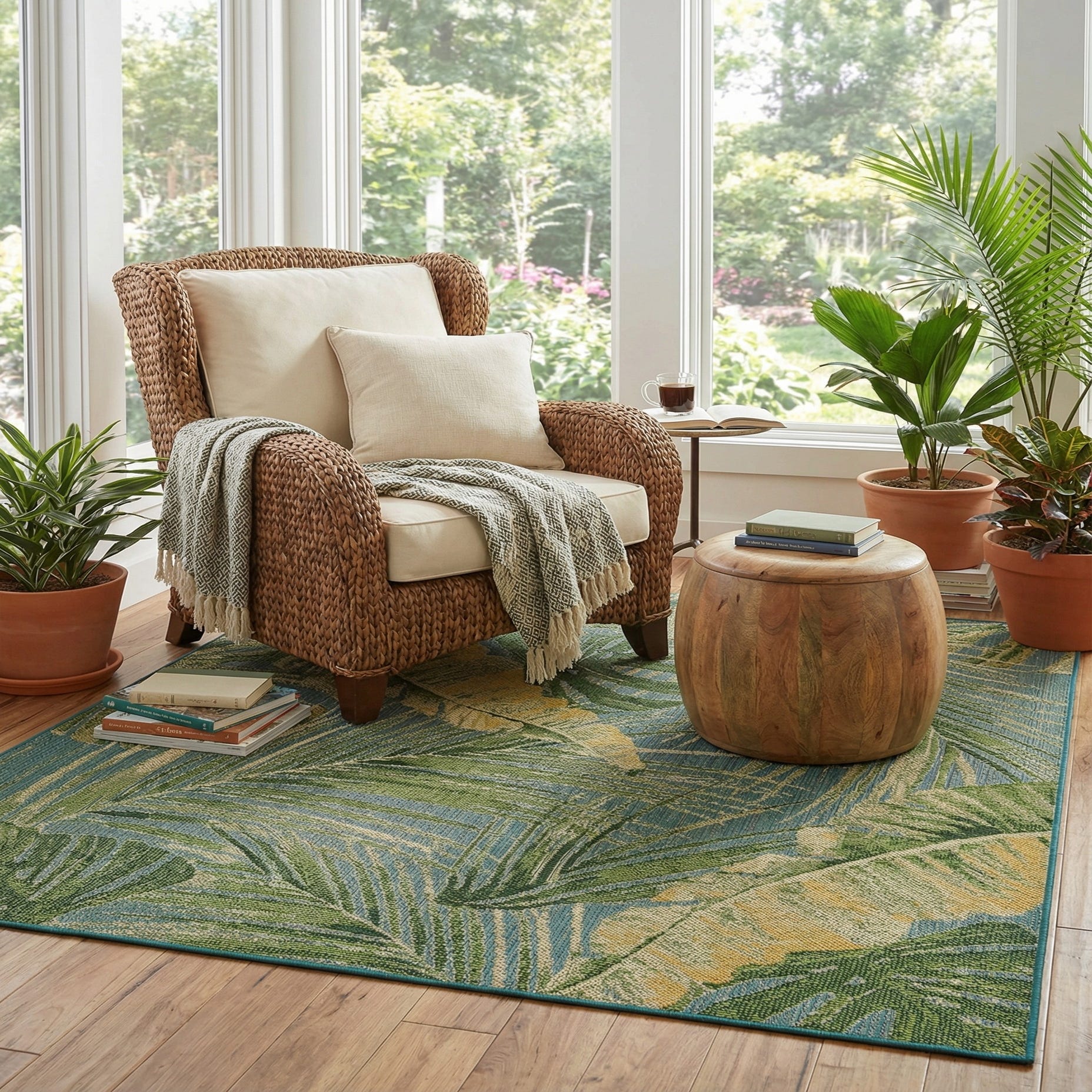 7' 10 x 7' 10 Washable Botanical Indoor / Outdoor Square Rug
