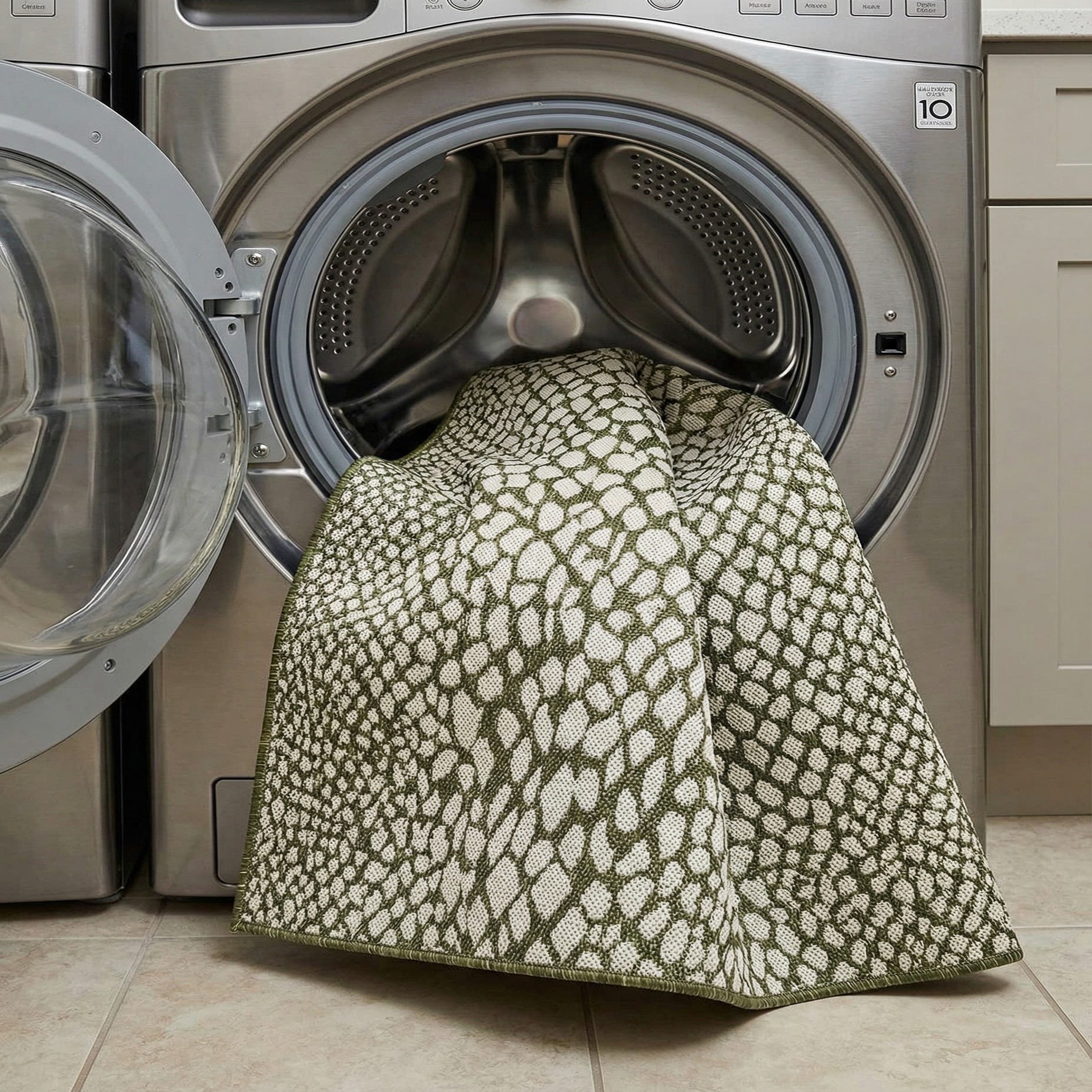 Primary color is Green. Colors in this rug include: Green, Ivory.