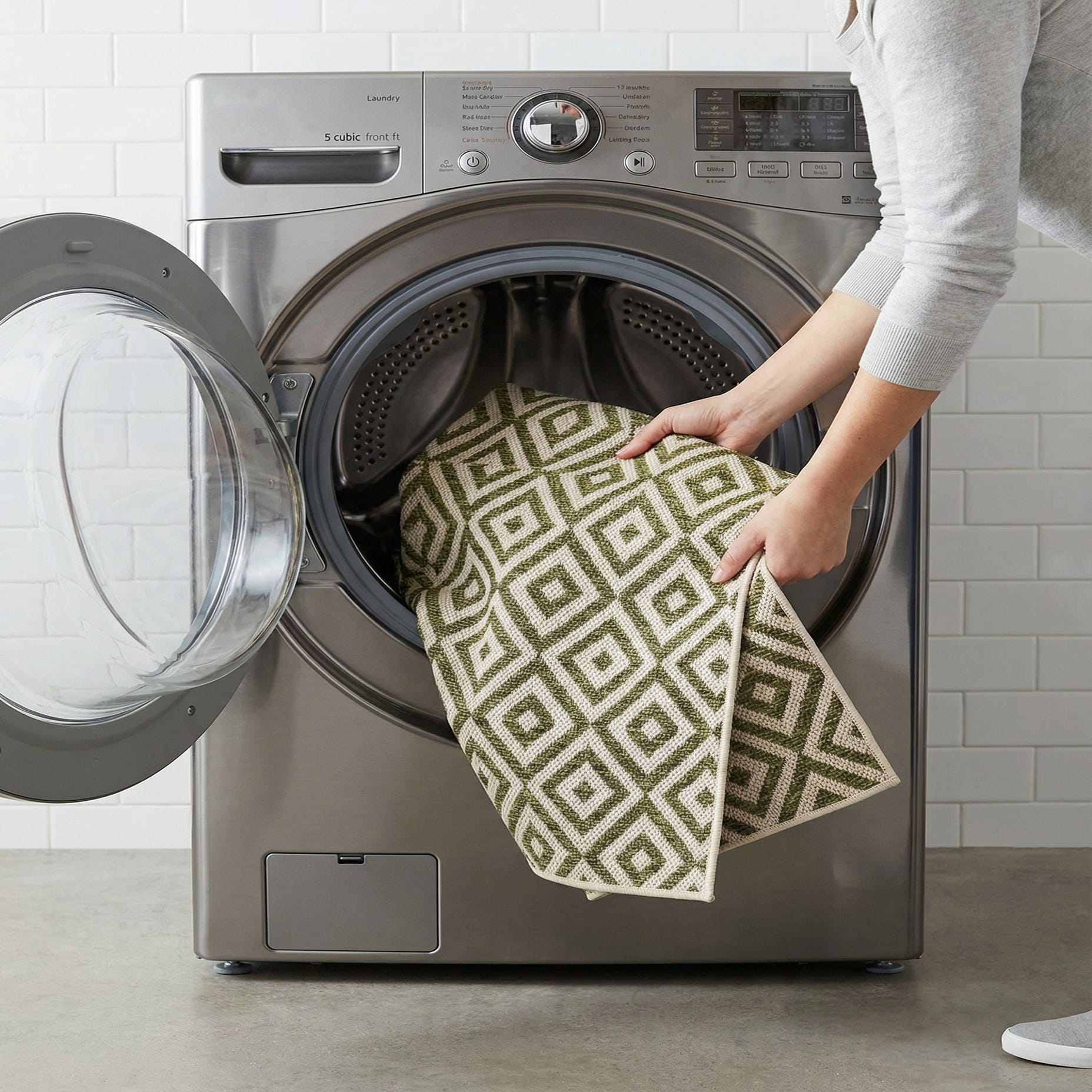 Primary color is Green. Colors in this rug include: Green, Ivory.