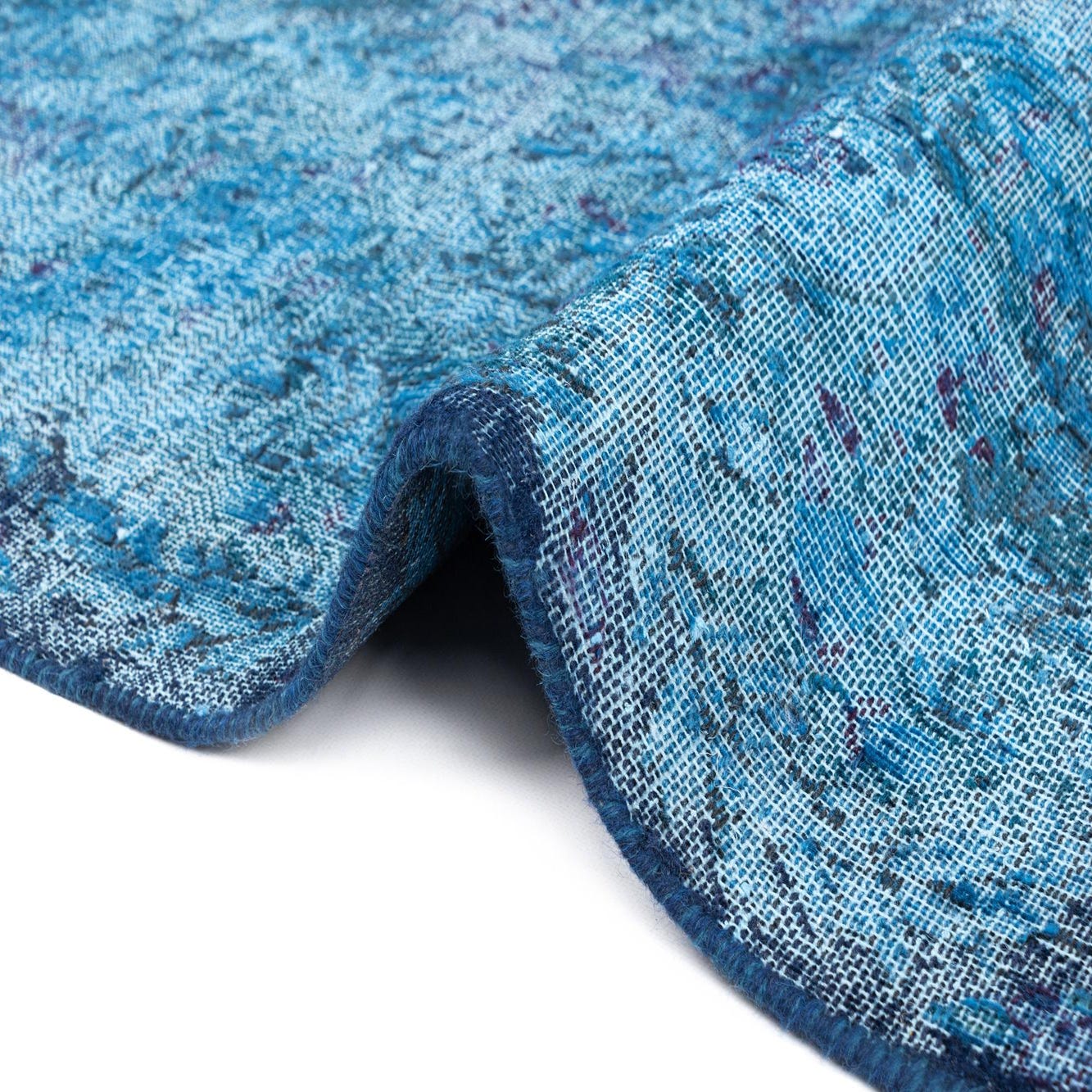 Primary color is Grey. Colors in this rug include: Grey, Blue, Dark Blue, Grey.