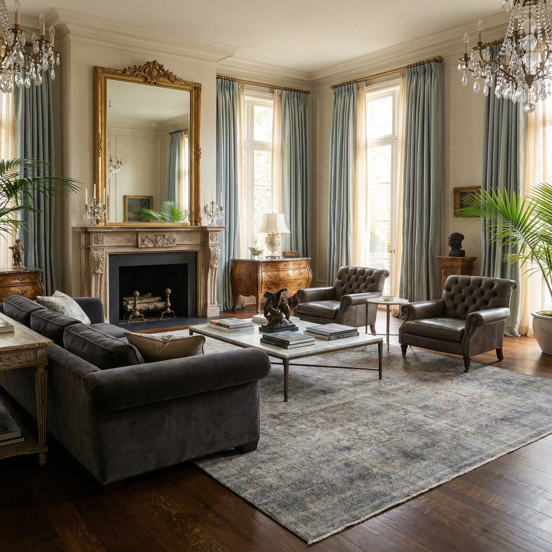 Primary color is Grey. Colors in this rug include: Grey, Grey, Brown.