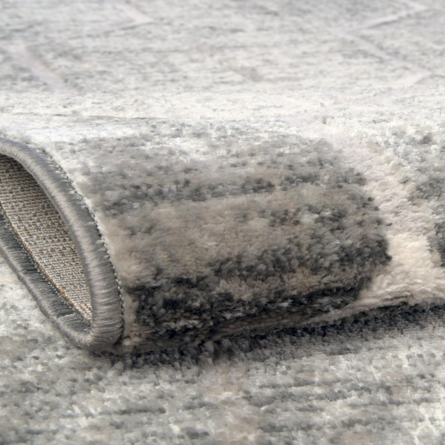 Primary color is Grey. Colors in this rug include: Grey, Ivory.