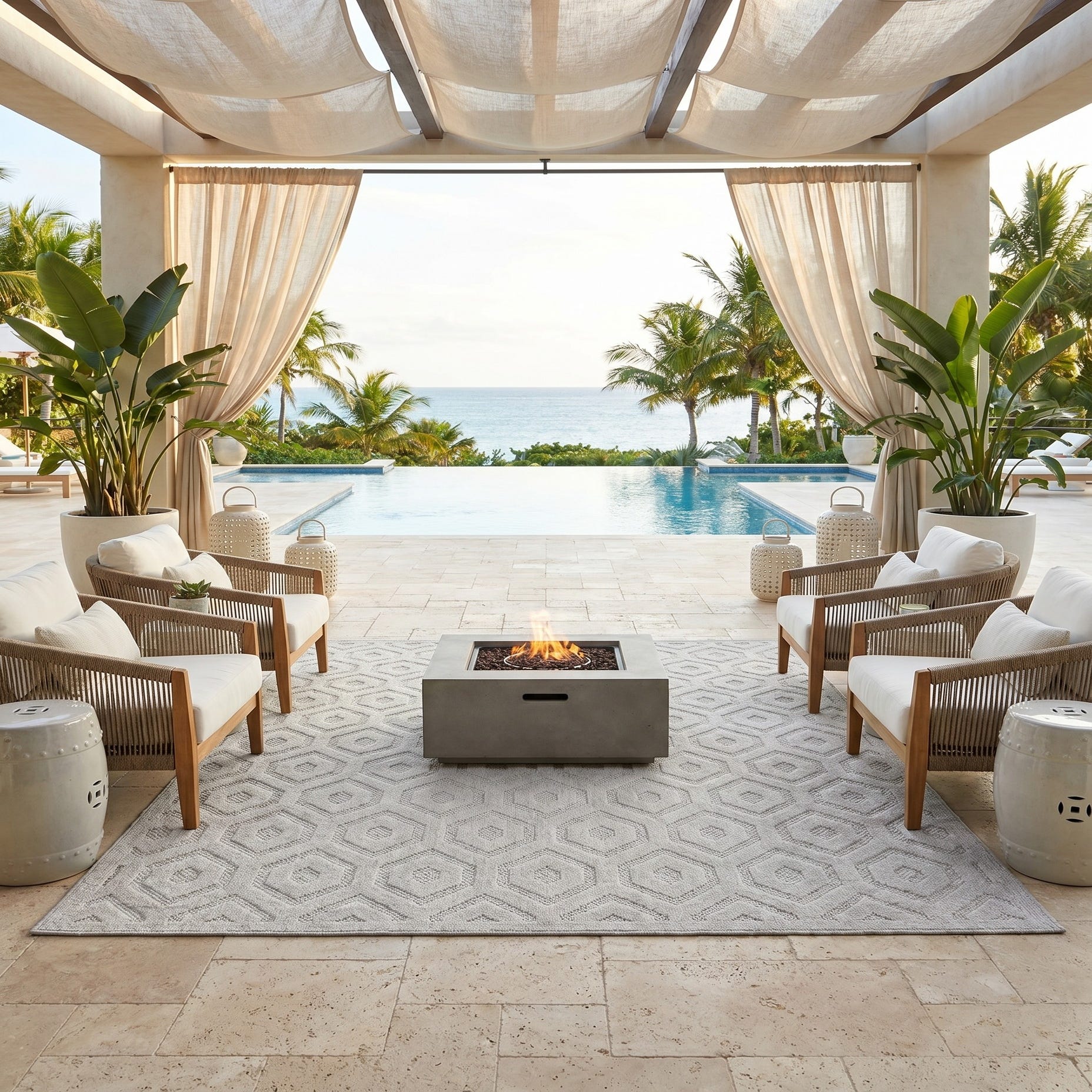 6' x 9' Easy-Clean Trellis Textured Indoor / Outdoor Rug