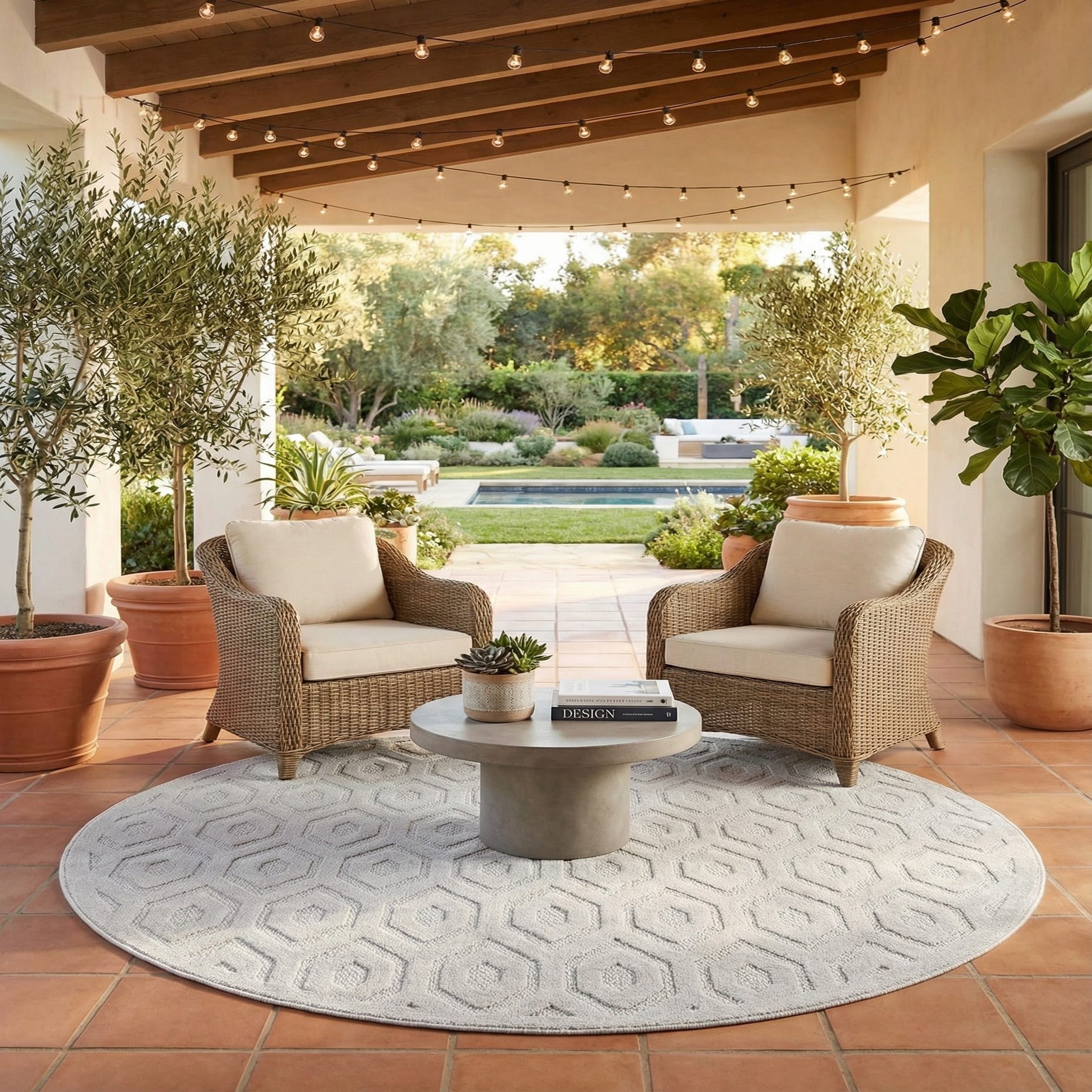 Detail image of 7' x 7'  Washable Trellis Textured Indoor / Outdoor Round Rug