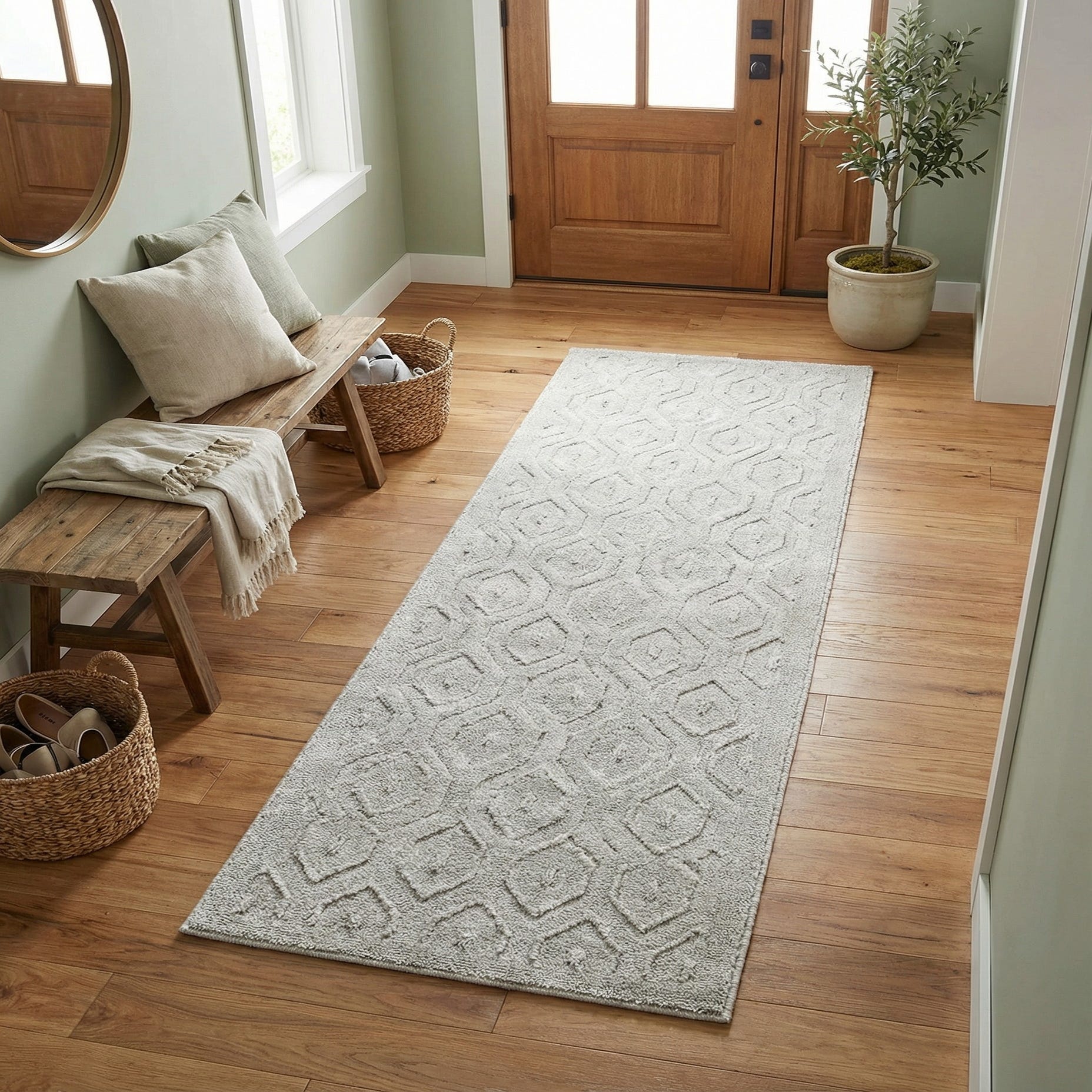 2' x 8' Washable Trellis Textured Indoor / Outdoor Runner Rug