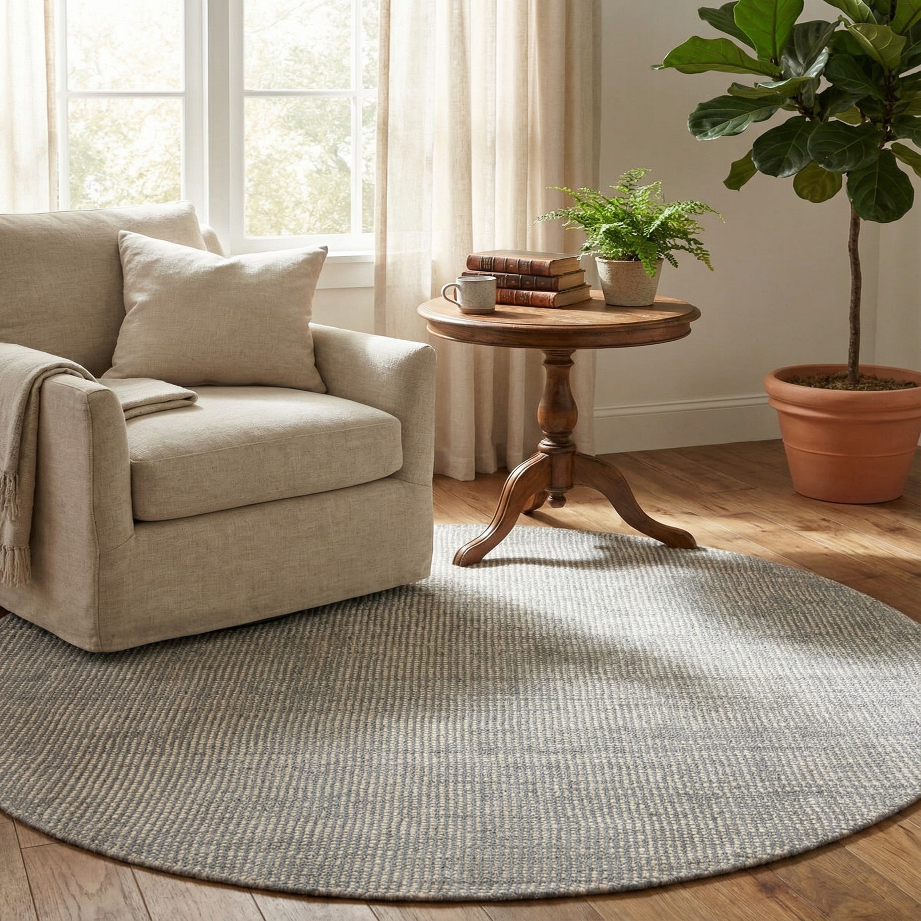 Primary image 5' 3 x 5' 3  Hand Woven Jill Zarin English Manor Farmhouse Wool Round Rug