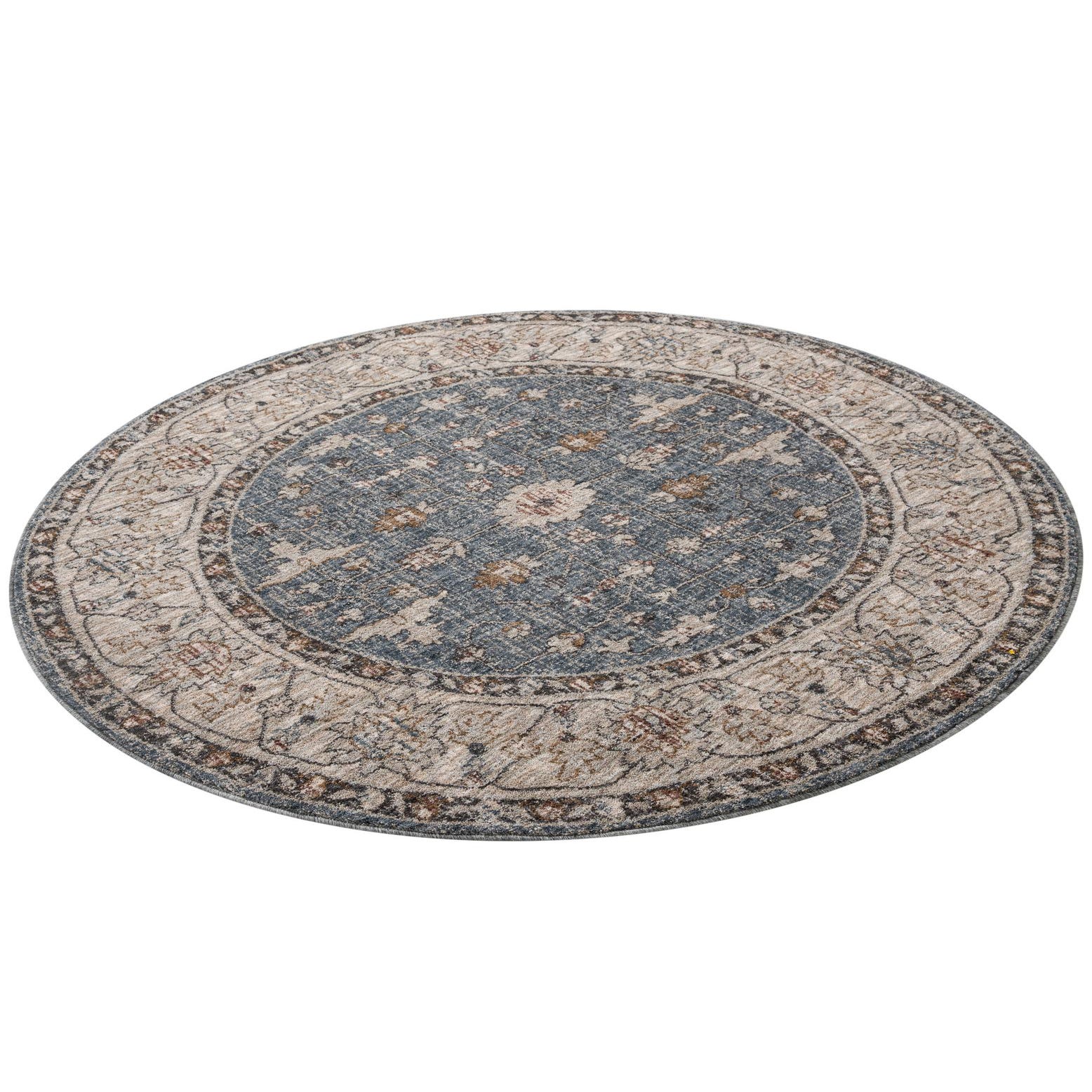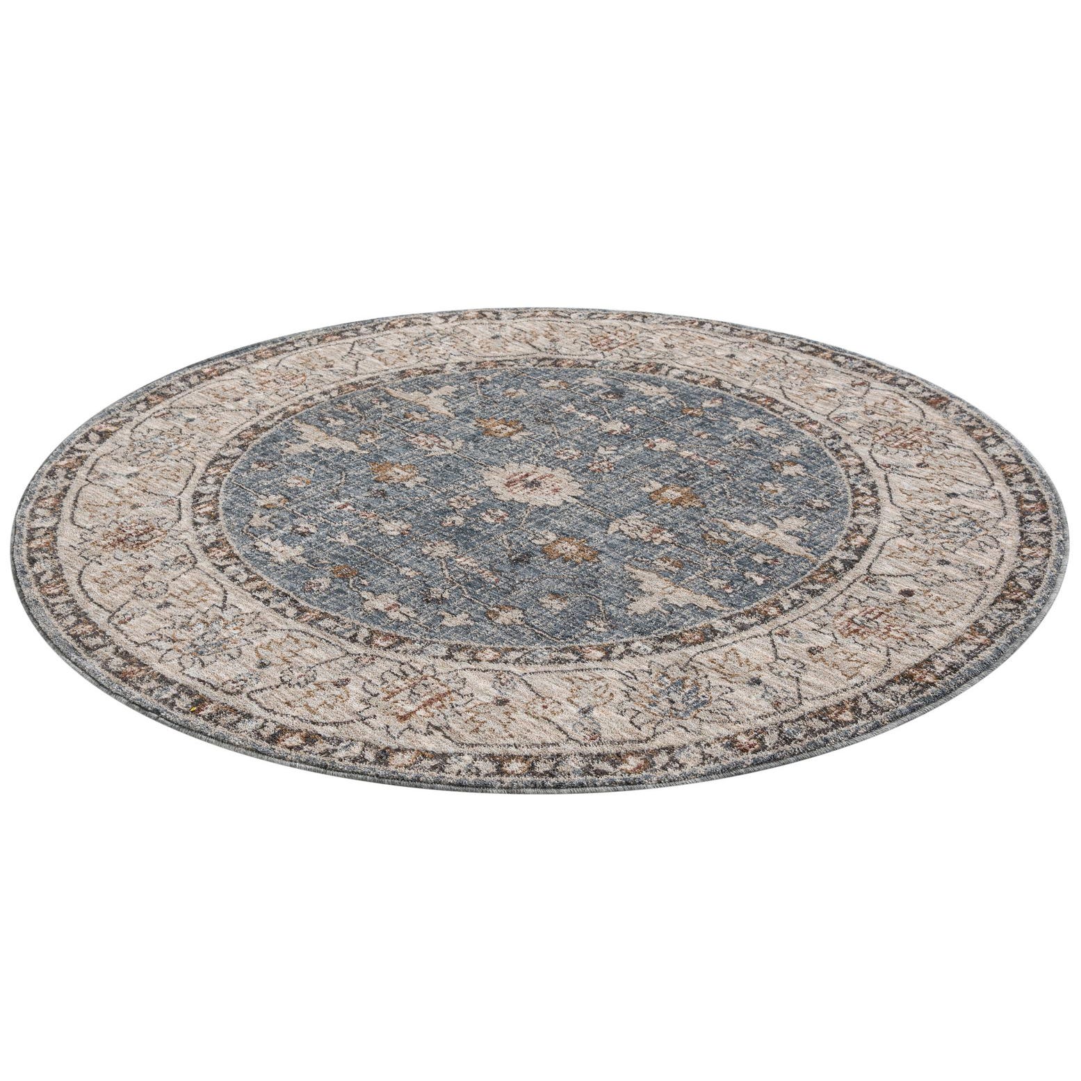 Primary color is Harbor Blue. Colors in this rug include: Harbor Blue, Gray, Ivory, Light Brown.
