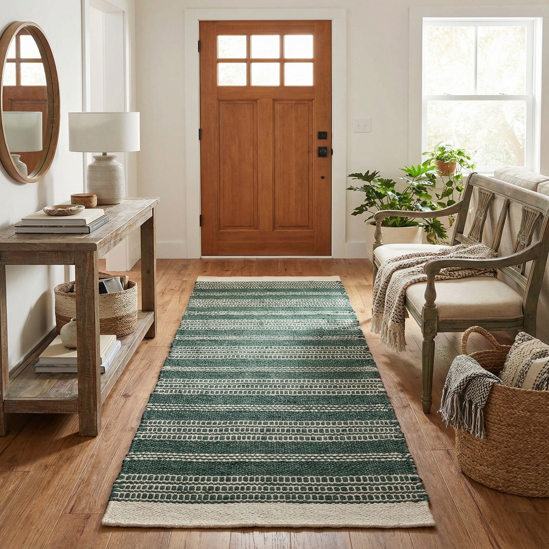 Primary color is Hunter Green. Colors in this rug include: Hunter Green, Ivory.