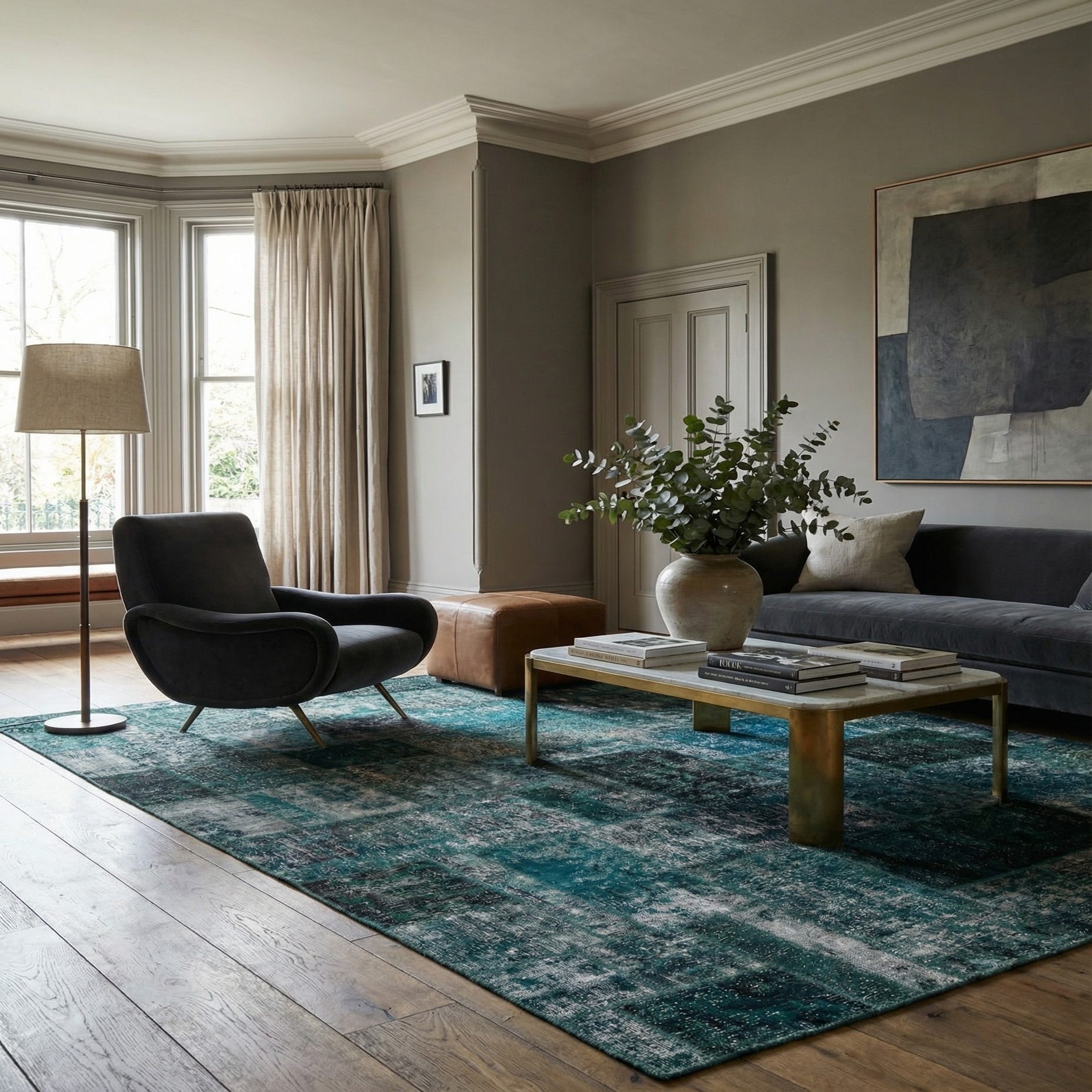 This Persian Ultra Vintage rug is an antique Persian Rug that has been washed, over-dyed, and then shaved down to a low pile. Look at the detail pictures to fully appreciate the uniqueness of this piece.