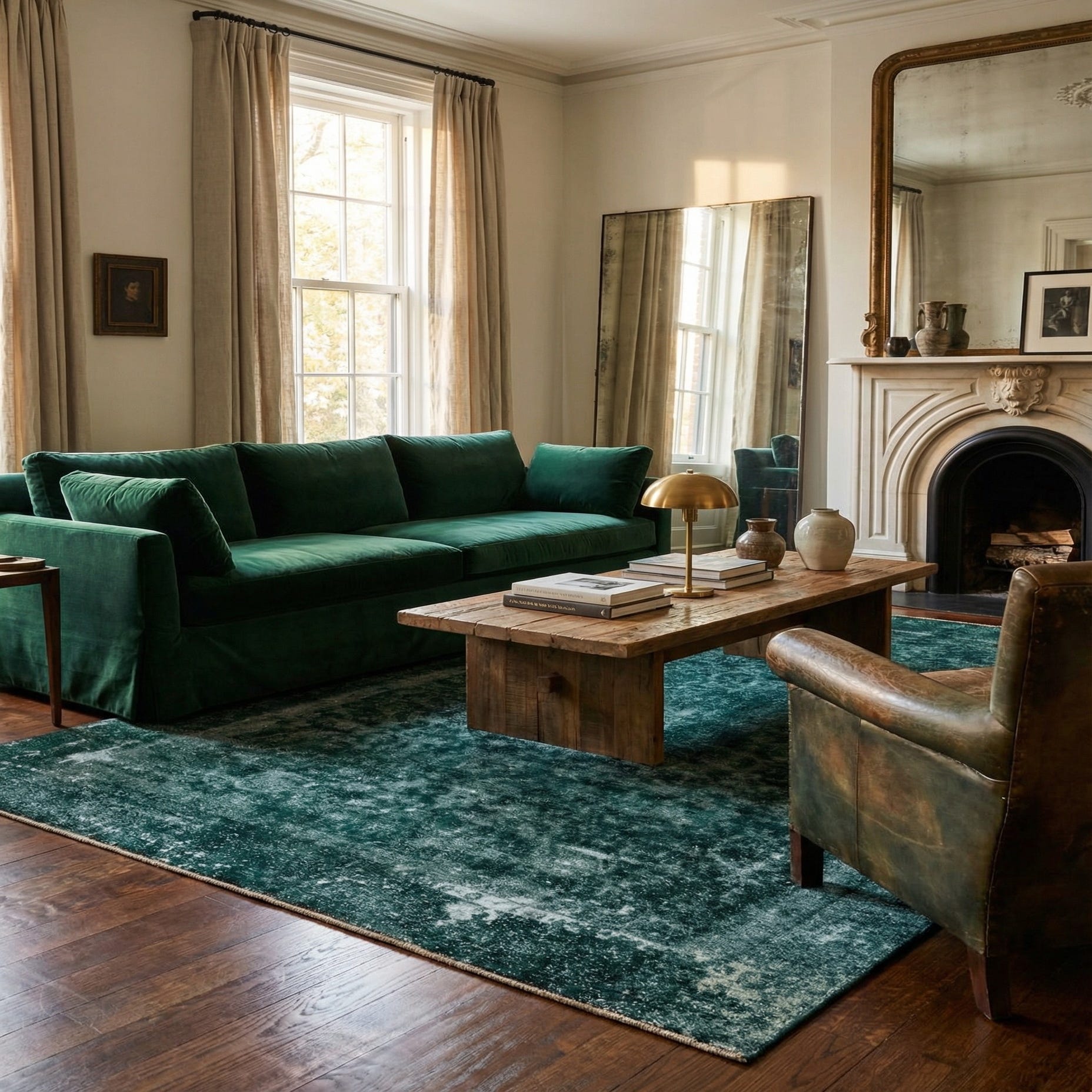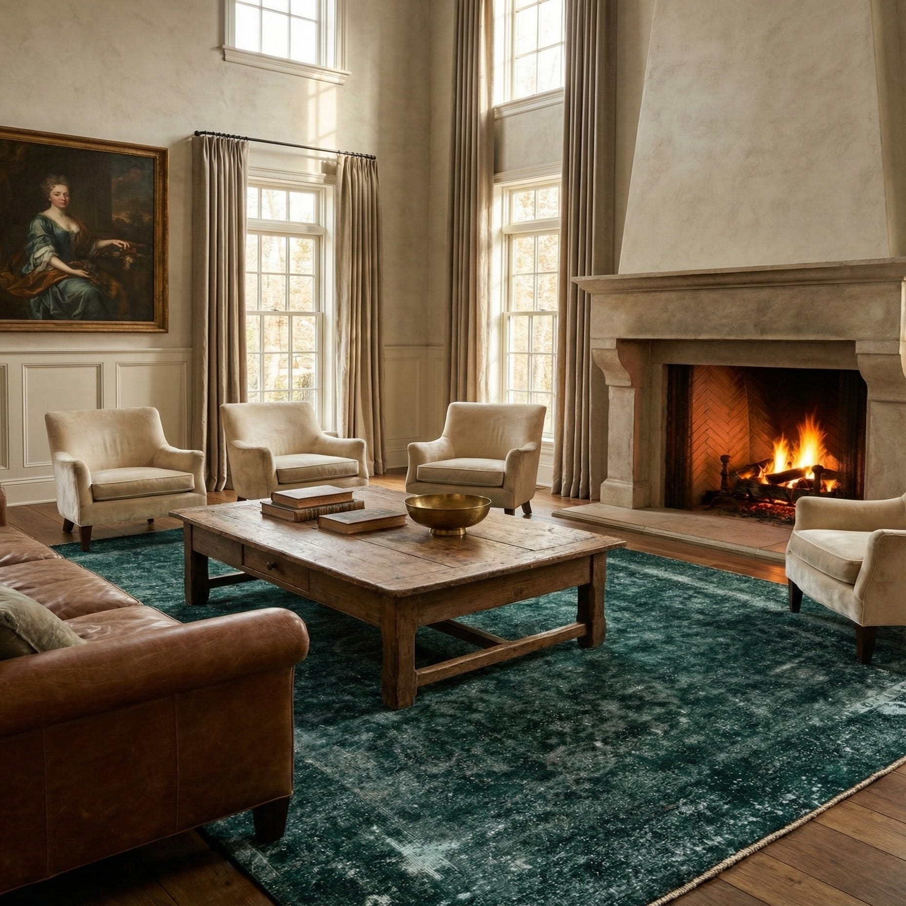 Primary color is Hunter Green. Colors in this rug include: Hunter Green, Black, Ivory.