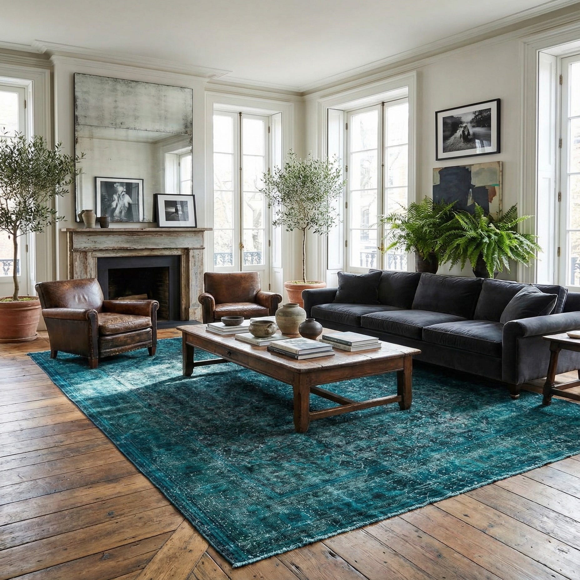 This Persian Ultra Vintage rug is an antique Persian Rug that has been washed, over-dyed, and then shaved down to a low pile. Look at the detail pictures to fully appreciate the uniqueness of this piece.