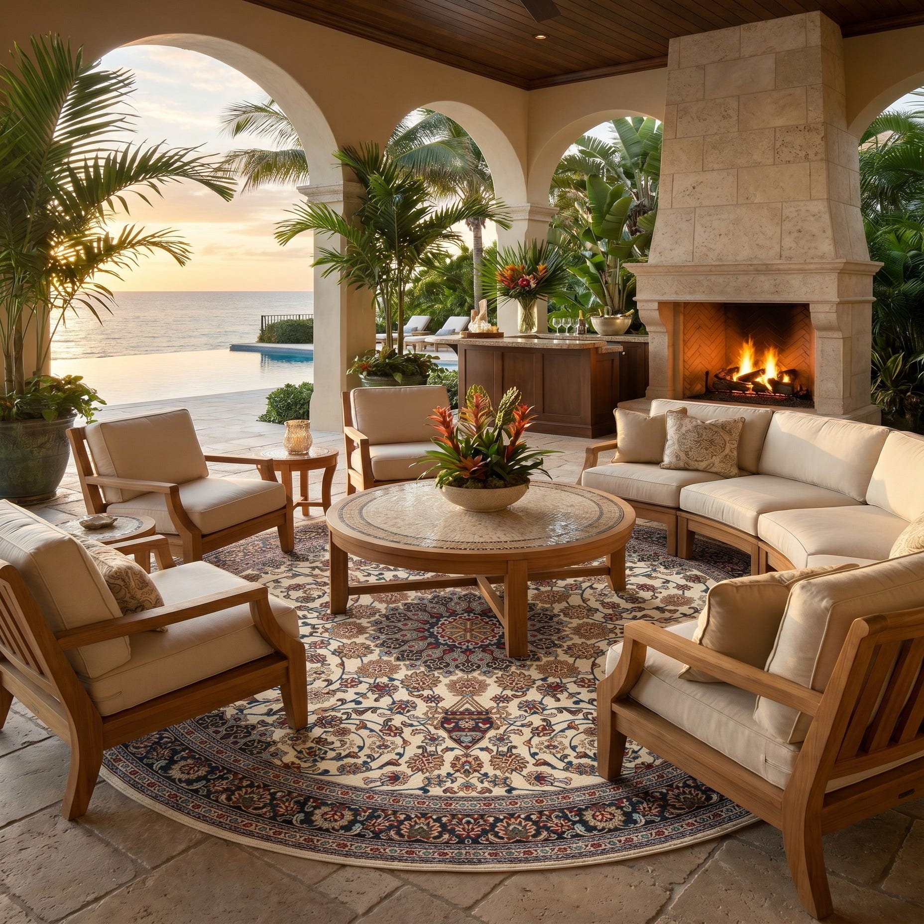10' x 10' Easy-Clean Traditional Indoor / Outdoor Round Rug
