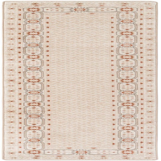Primary color is Ivory. Colors in this rug include: Ivory, Beige, Gray, Rust Red.