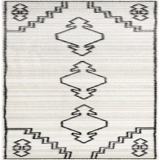 Primary color is Ivory. Colors in this rug include: Ivory, Beige, Black.