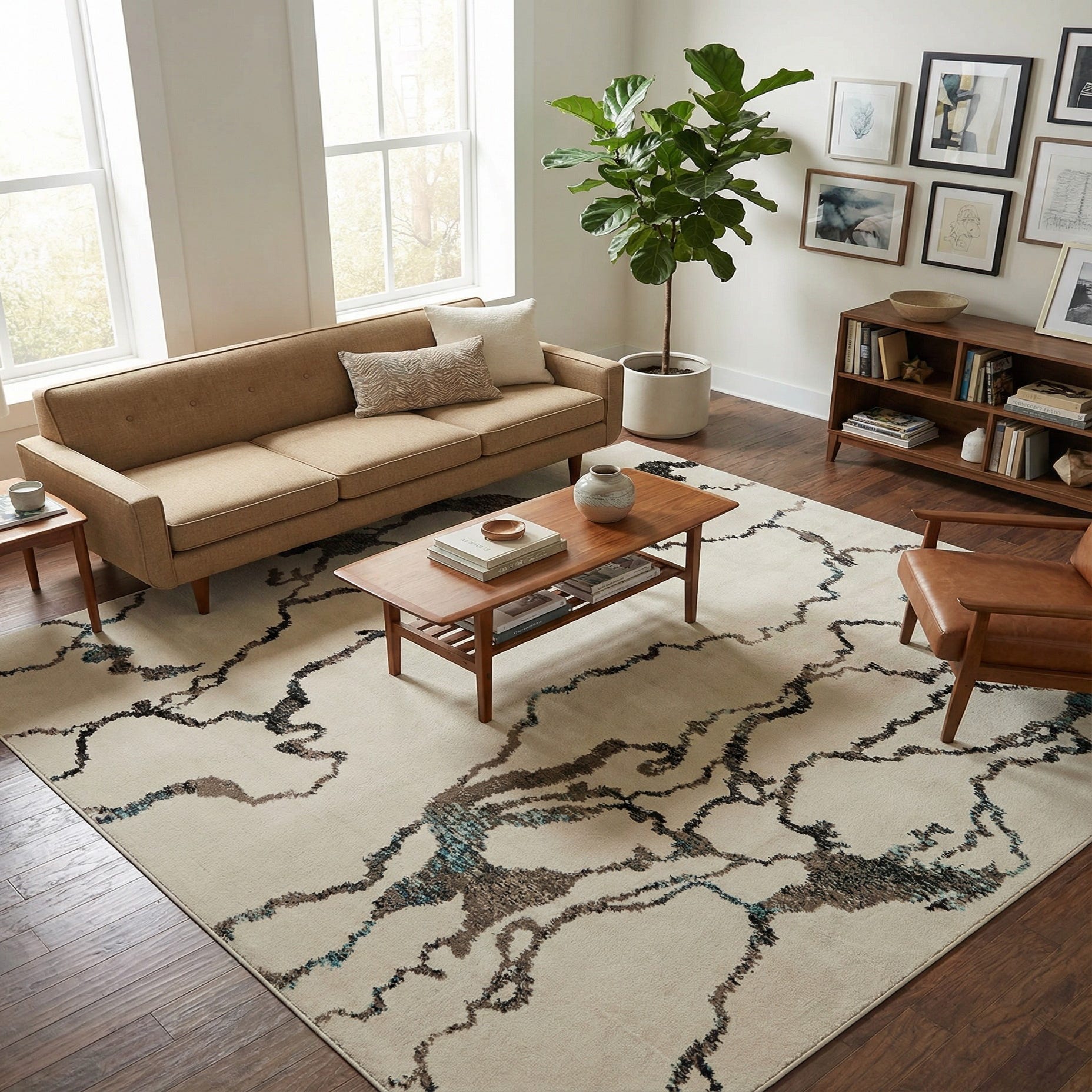 Primary color is Ivory. Colors in this rug include: Ivory, Beige, Teal, Light Blue, Navy Blue.