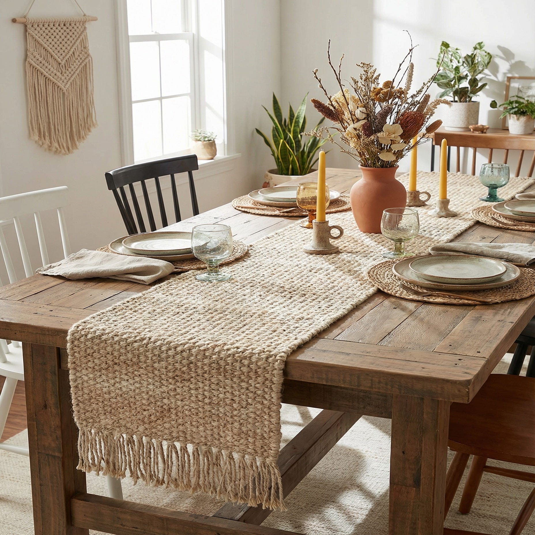 1' 2 x 10' Hand Woven Chunky Jute Table Runner Rug