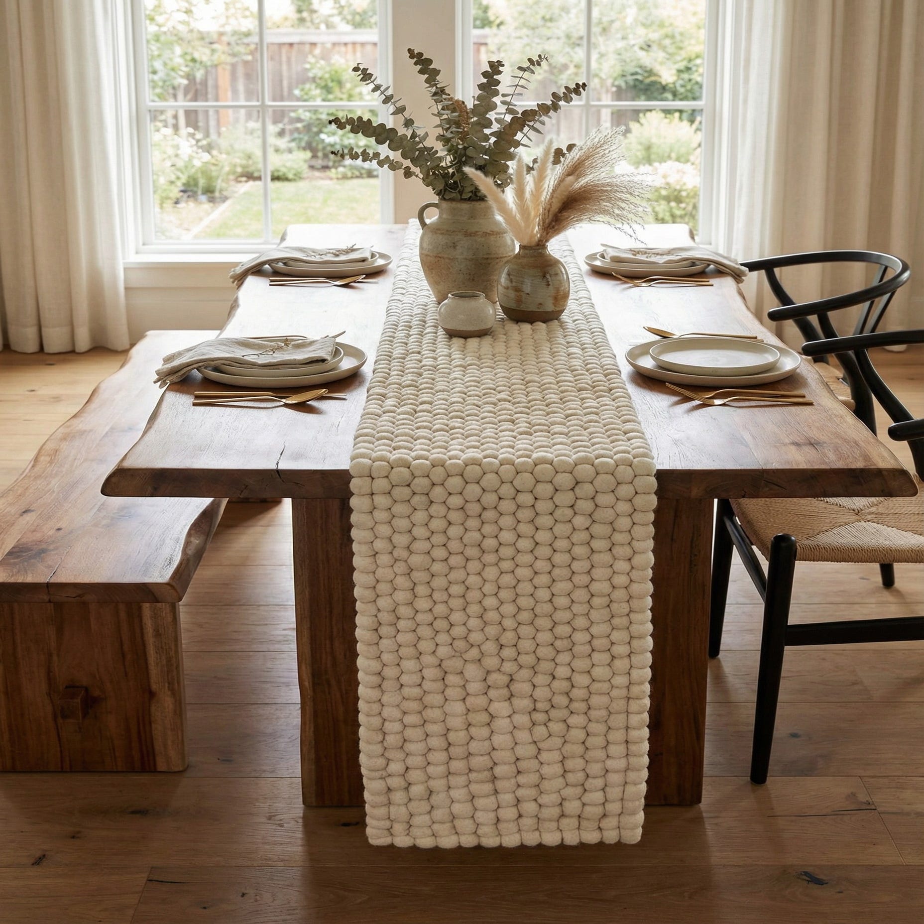 1' 2 x 10' Hand Woven Felt Ball Wool Table Runner Rug