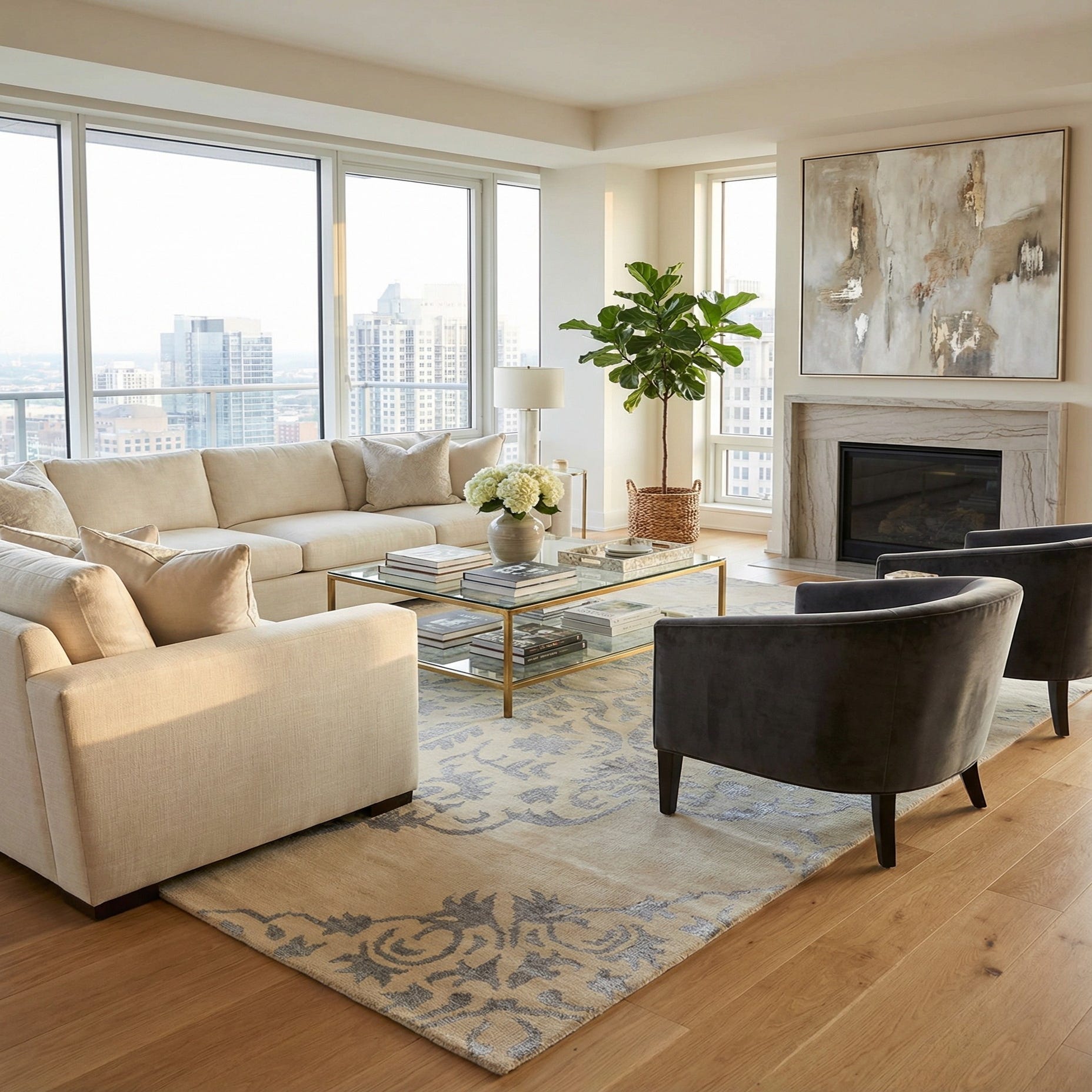 Primary color is Ivory. Colors in this rug include: Ivory, Silver.