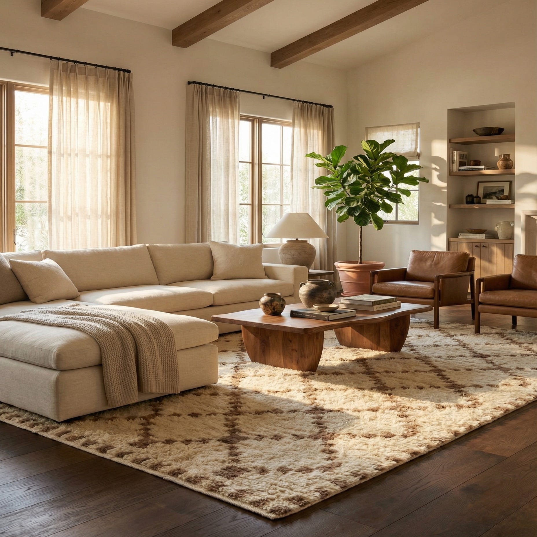Primary color is Ivory. Colors in this rug include: Ivory, Brown.