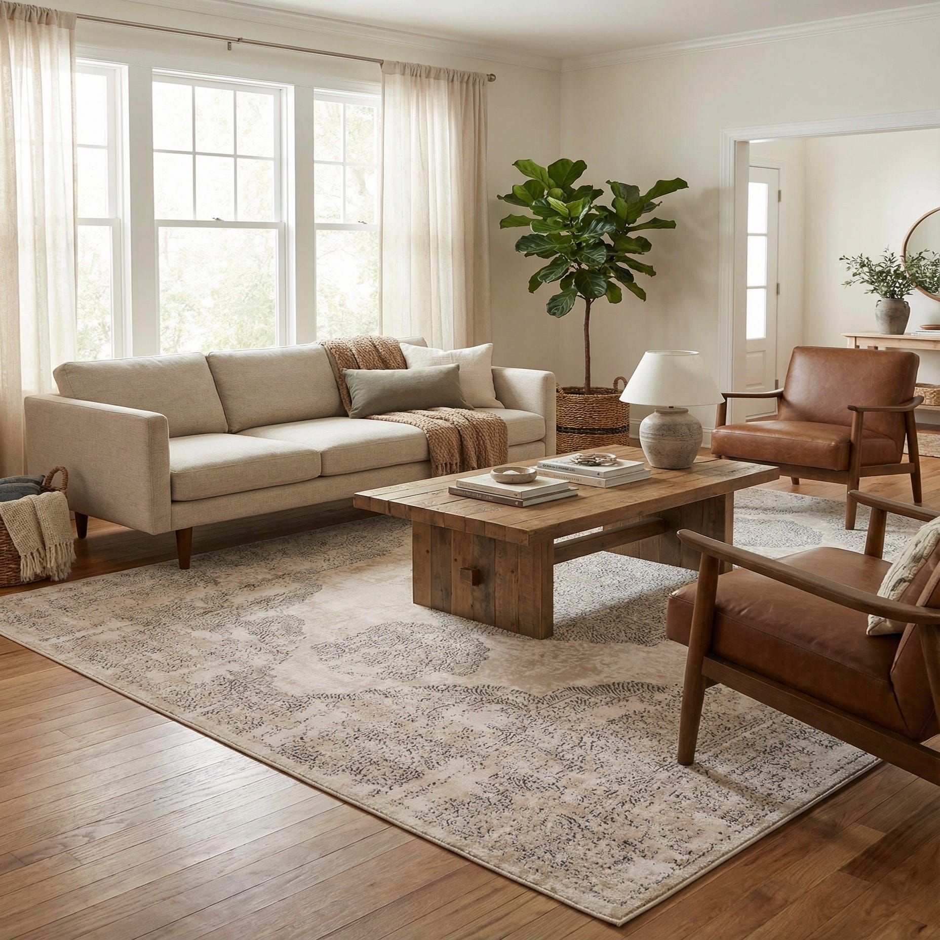 Primary color is Ivory. Colors in this rug include: Ivory, Beige, Gray.