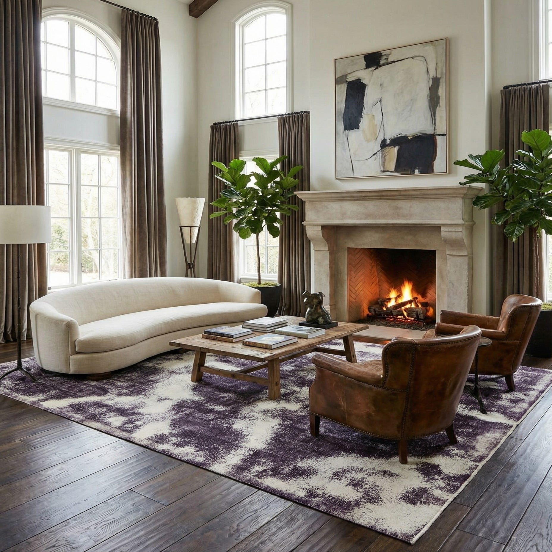 Primary color is Ivory. Colors in this rug include: Ivory, Plum Red.