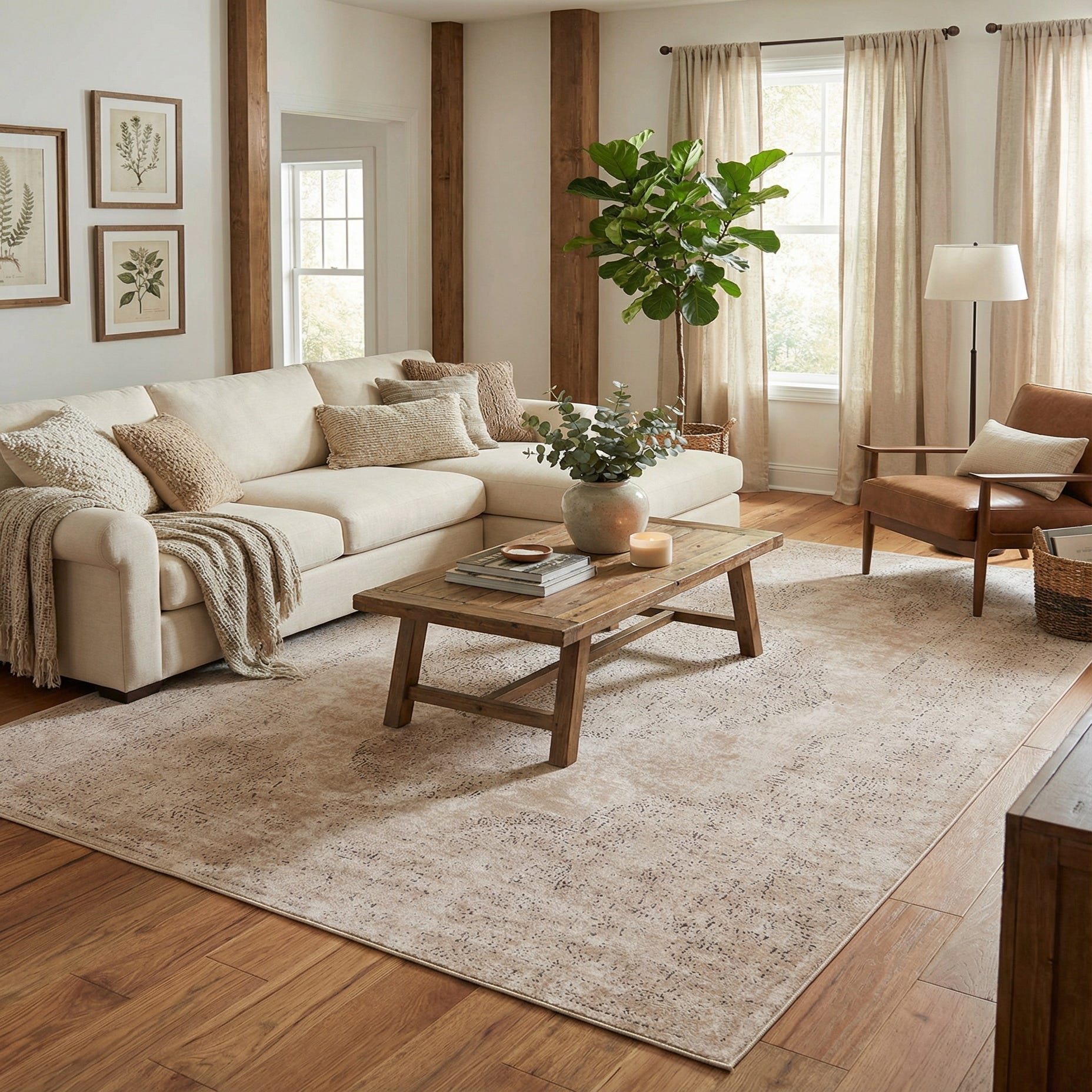 Primary color is Ivory. Colors in this rug include: Ivory, Beige, Gray.