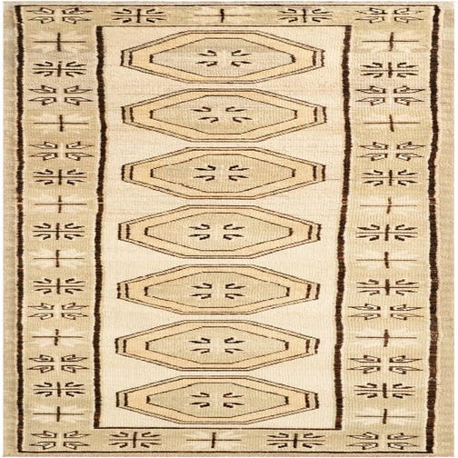 Primary color is Ivory. Colors in this rug include: Ivory, Beige, Brown, Olive.