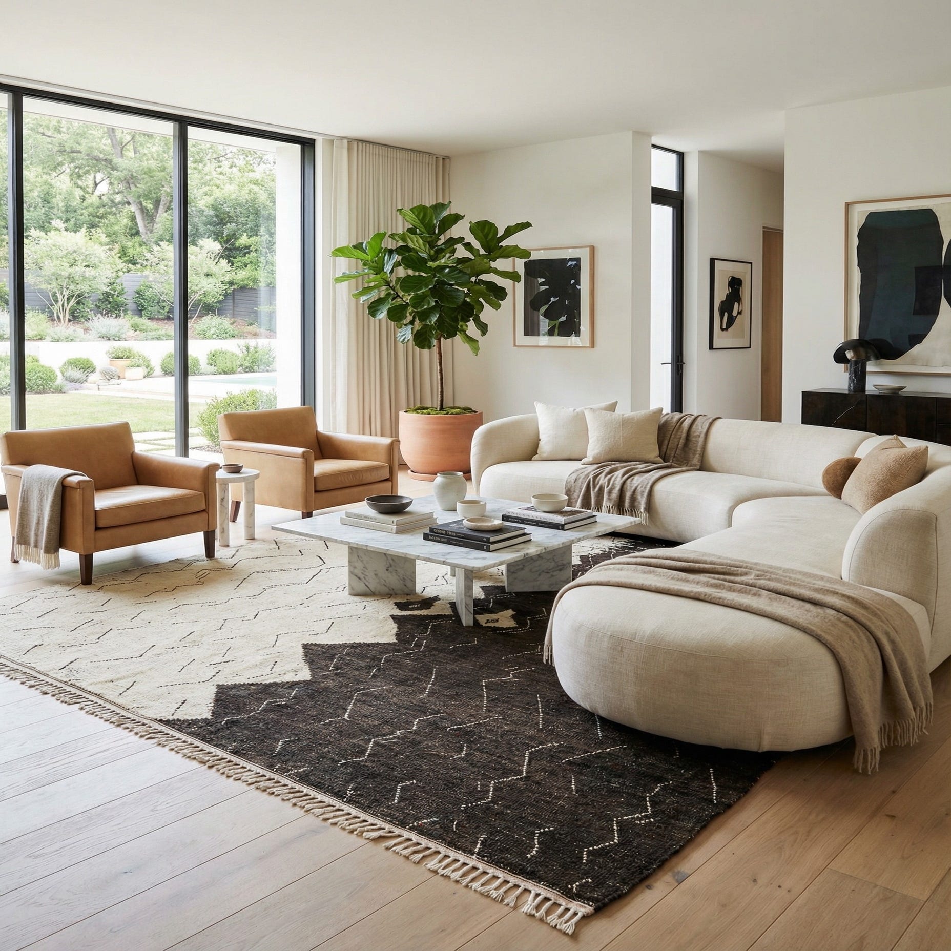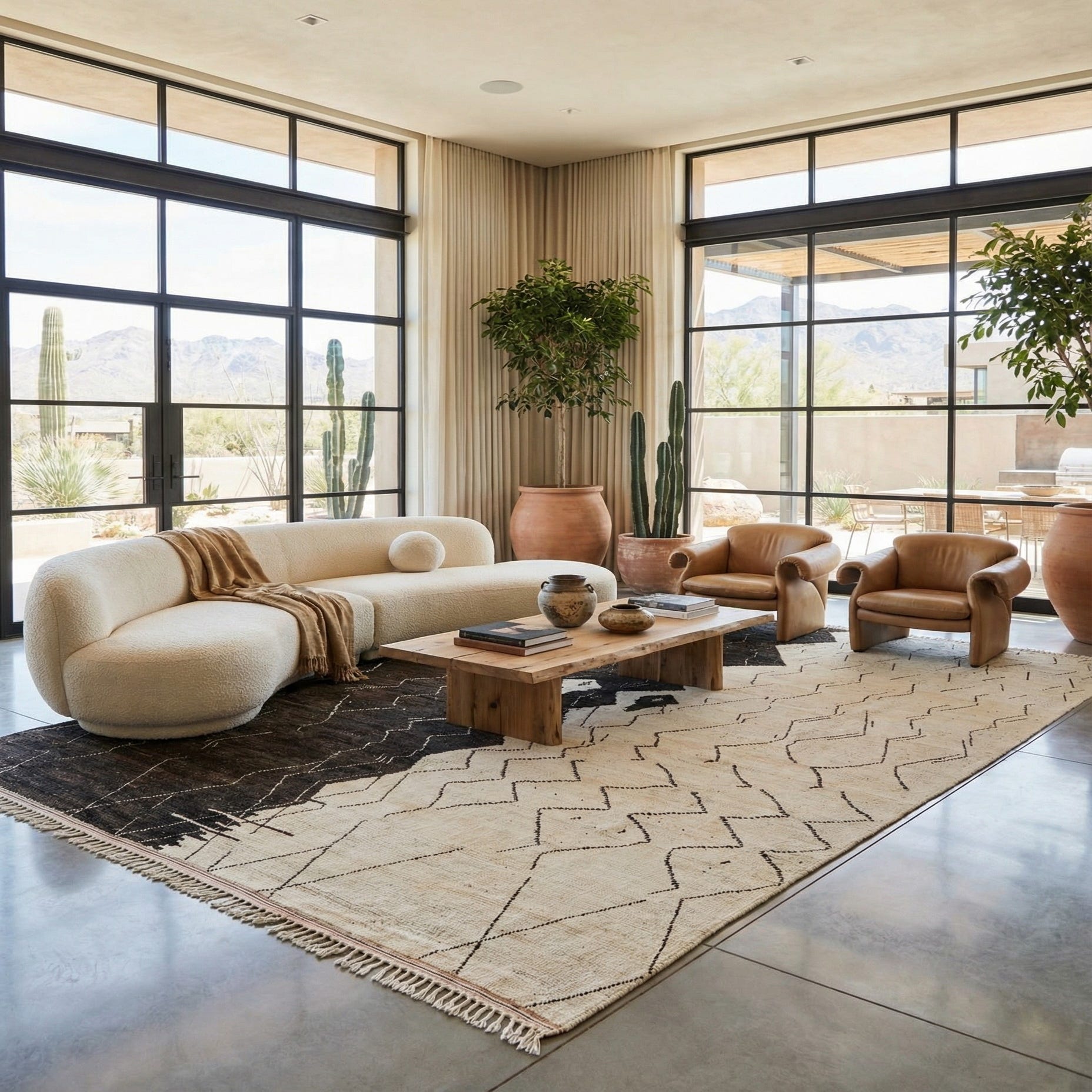 Primary color is Ivory. Colors in this rug include: Ivory, Black.