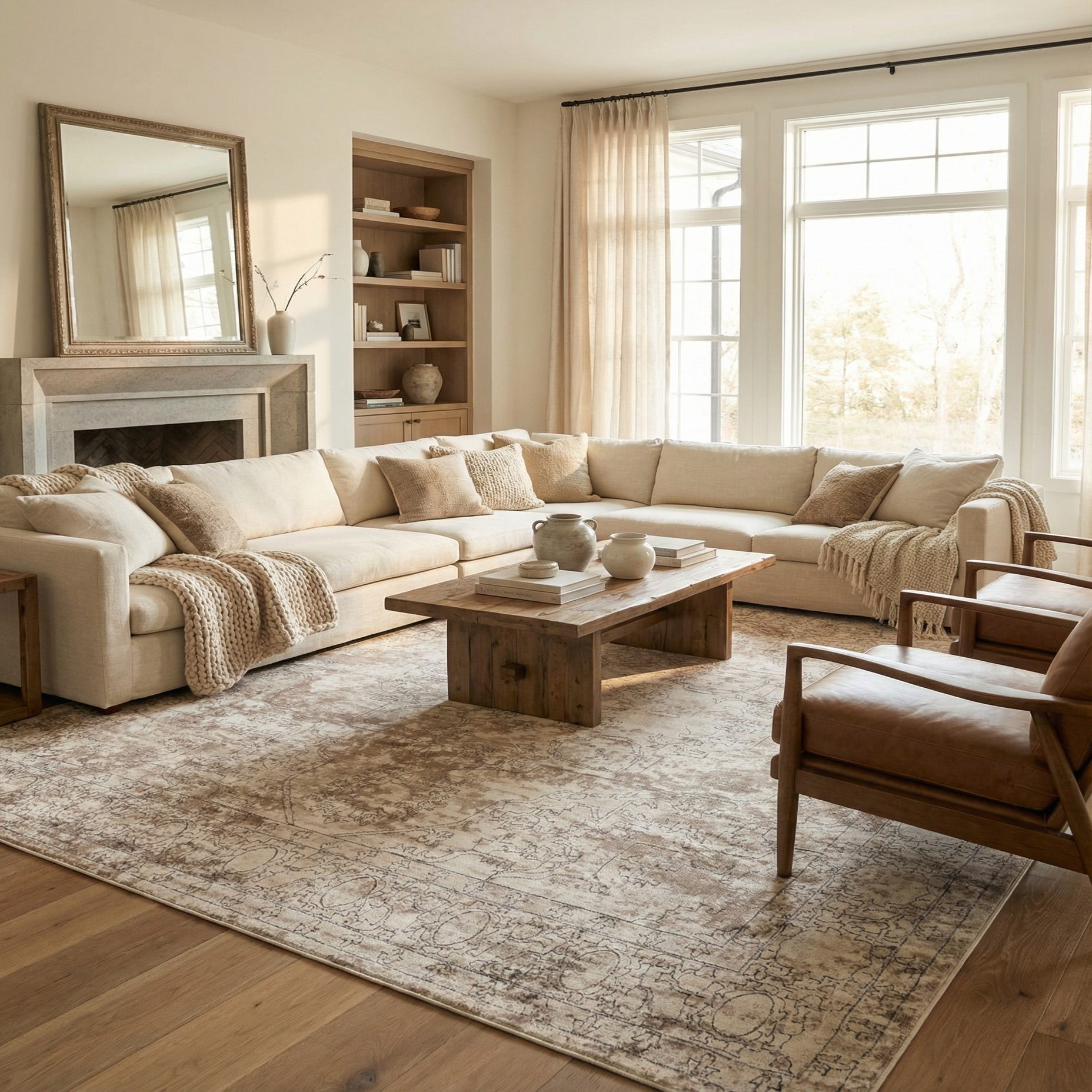 Primary color is Ivory. Colors in this rug include: Ivory, Beige, Gray.