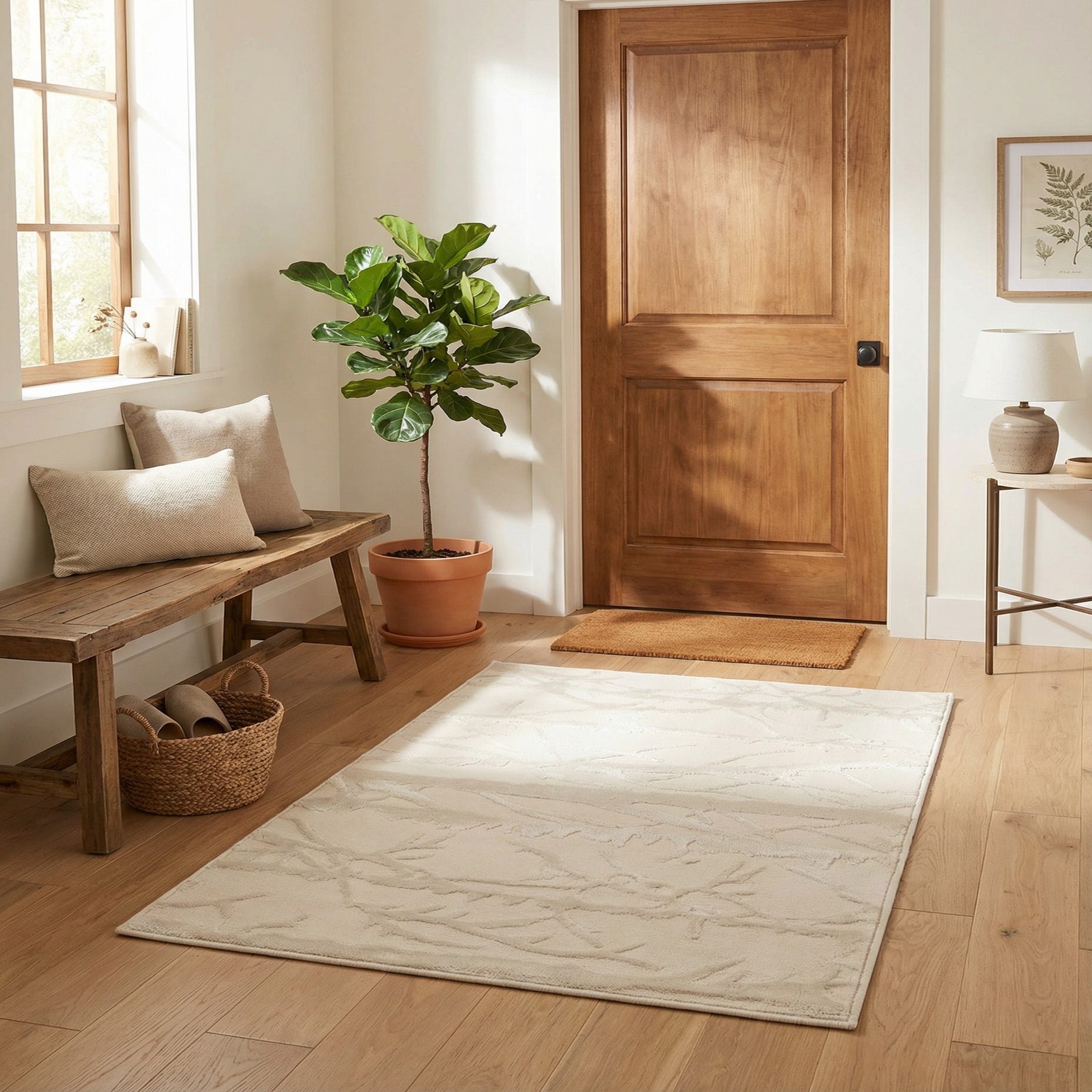 Primary color is Ivory. Colors in this rug include: Ivory, Beige.