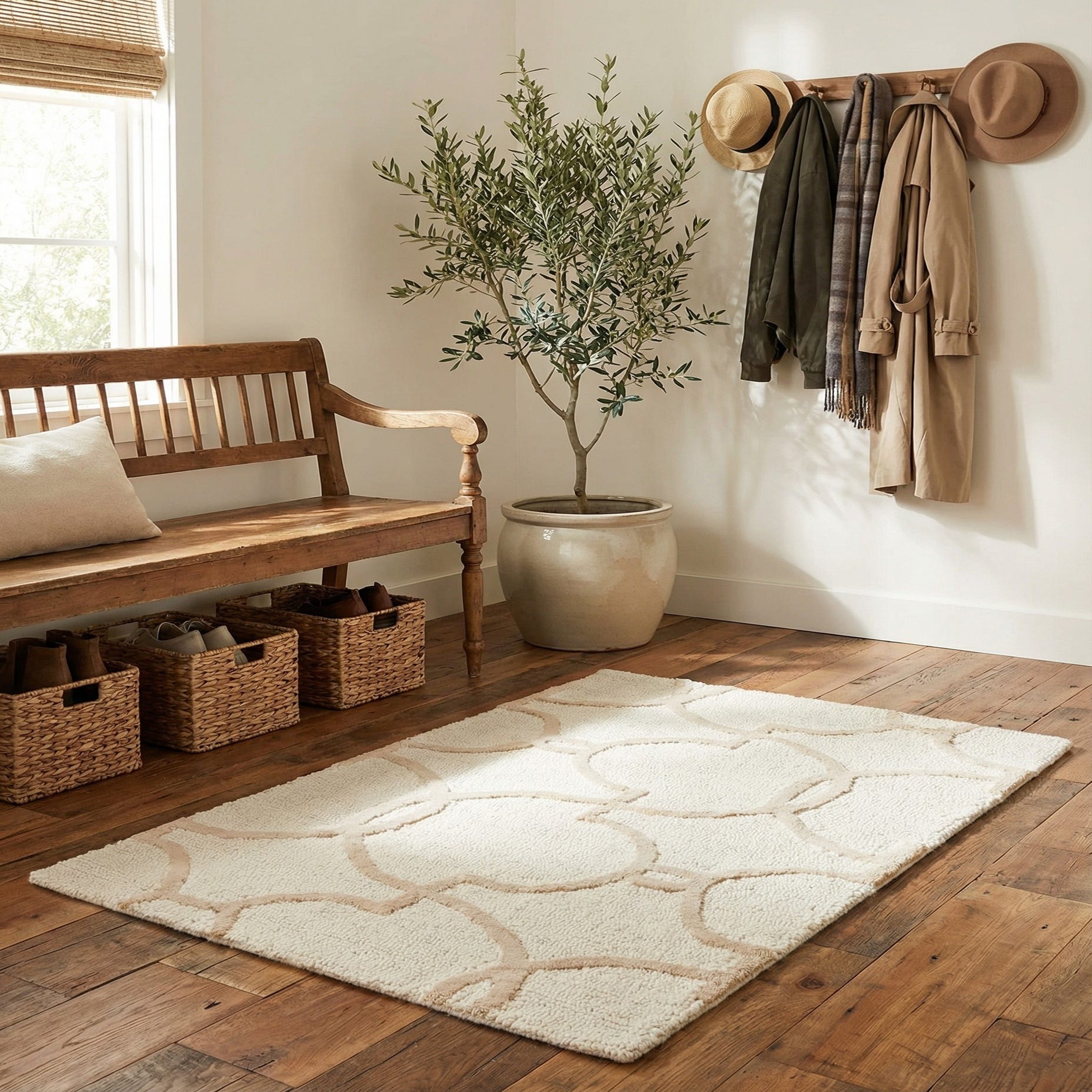 Primary color is Ivory. Colors in this rug include: Ivory, Cream.