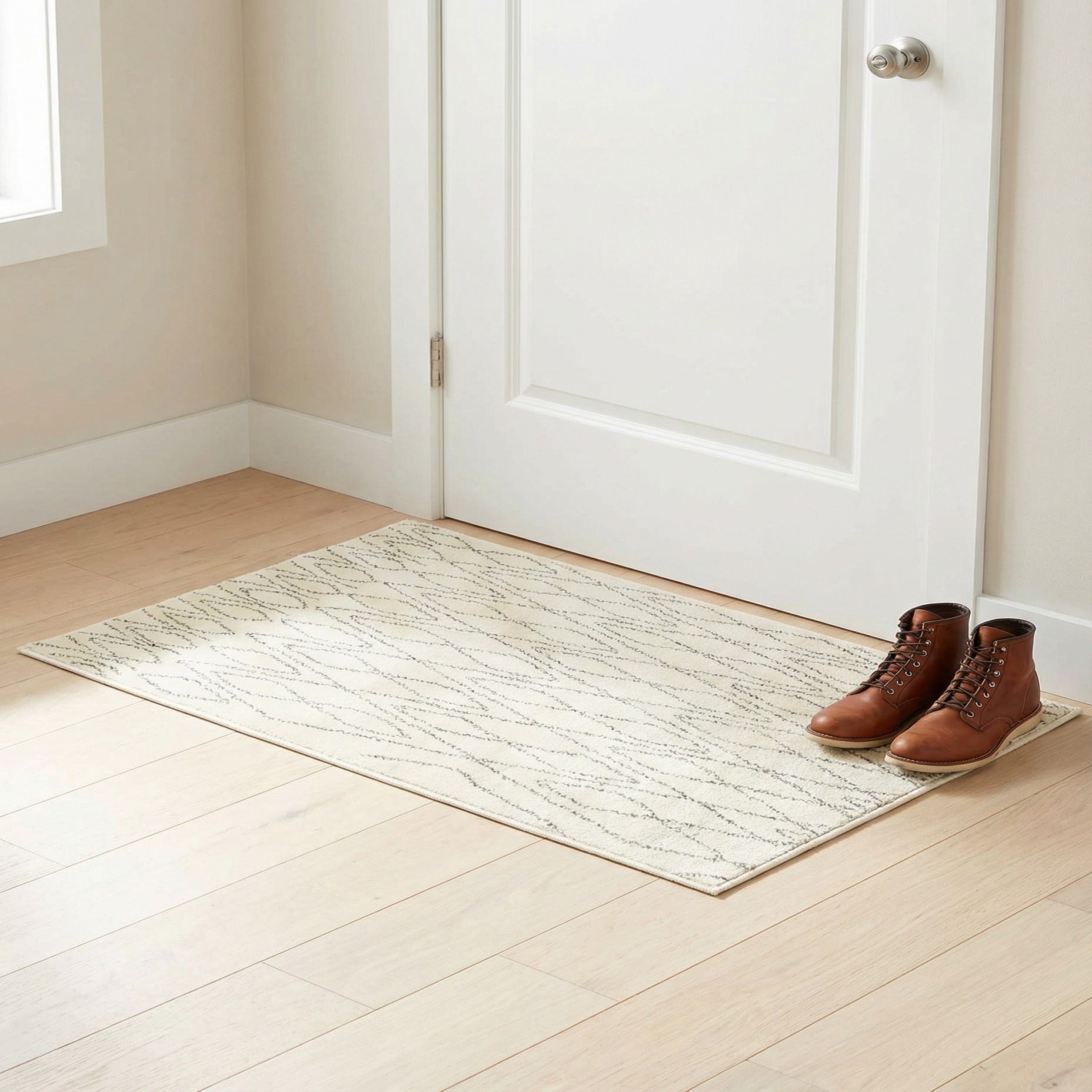 Primary color is Ivory. Colors in this rug include: Ivory, Beige, Gray.