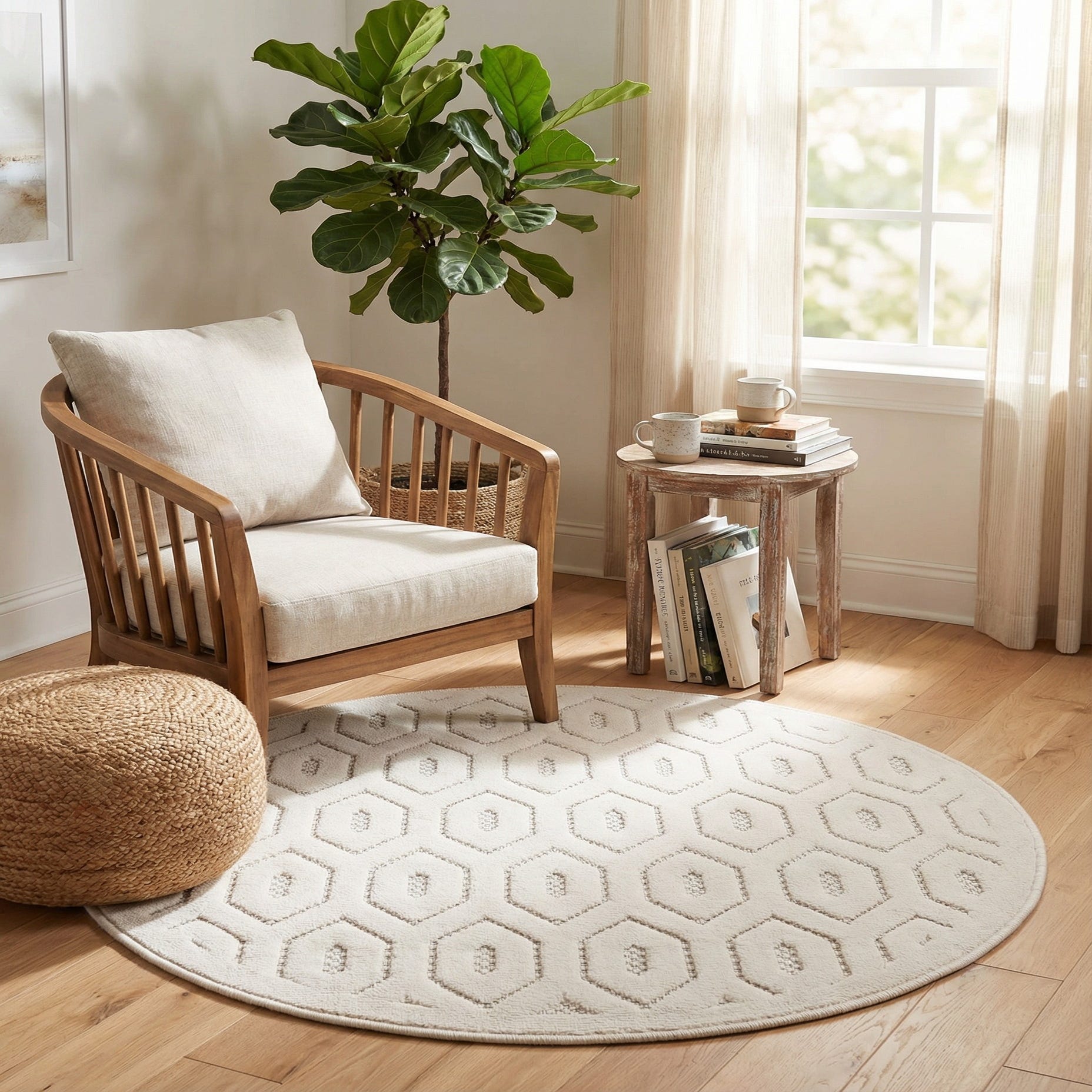 3' x 3' Washable Trellis Textured Indoor / Outdoor Round Rug