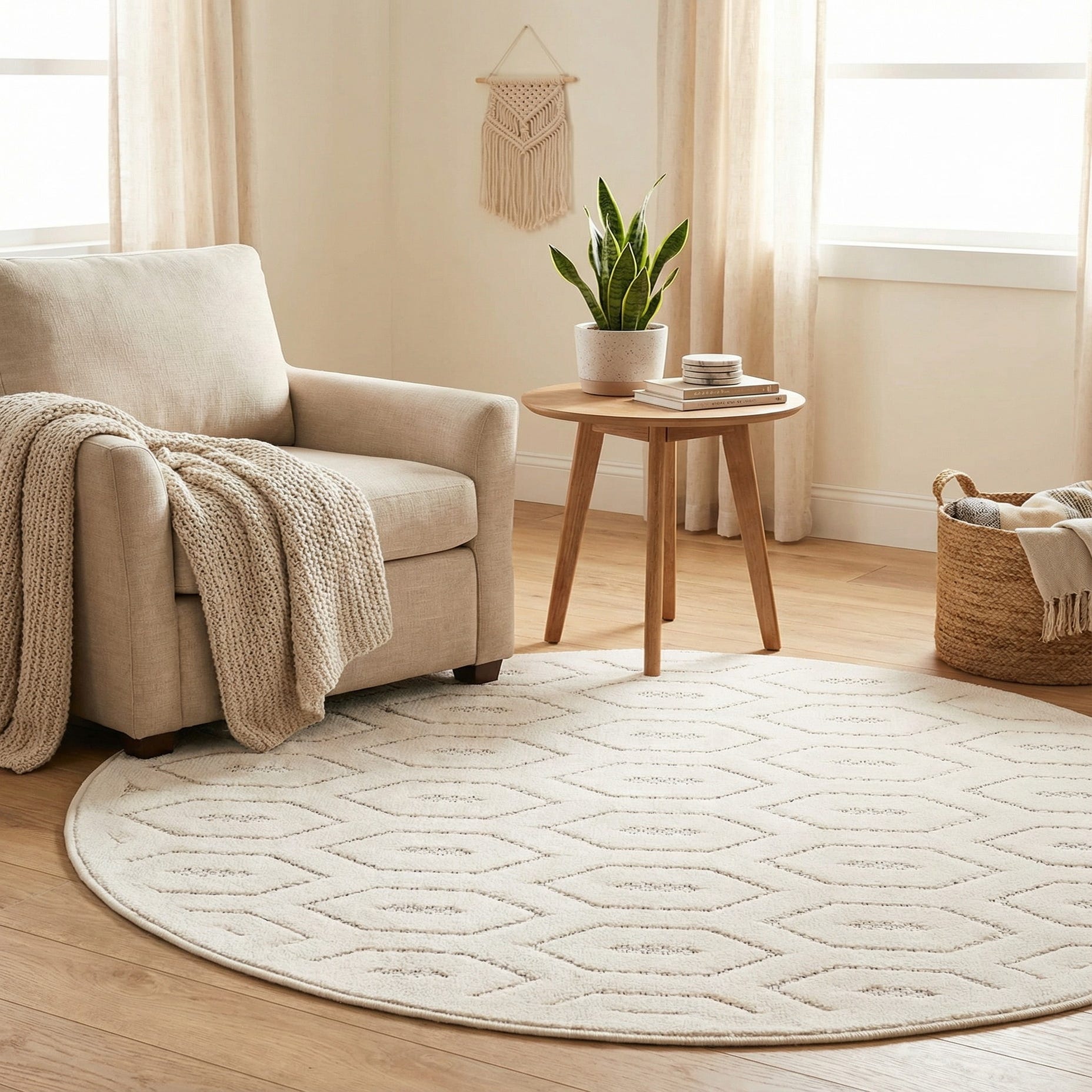 3' x 3' Washable Trellis Textured Indoor / Outdoor Round Rug