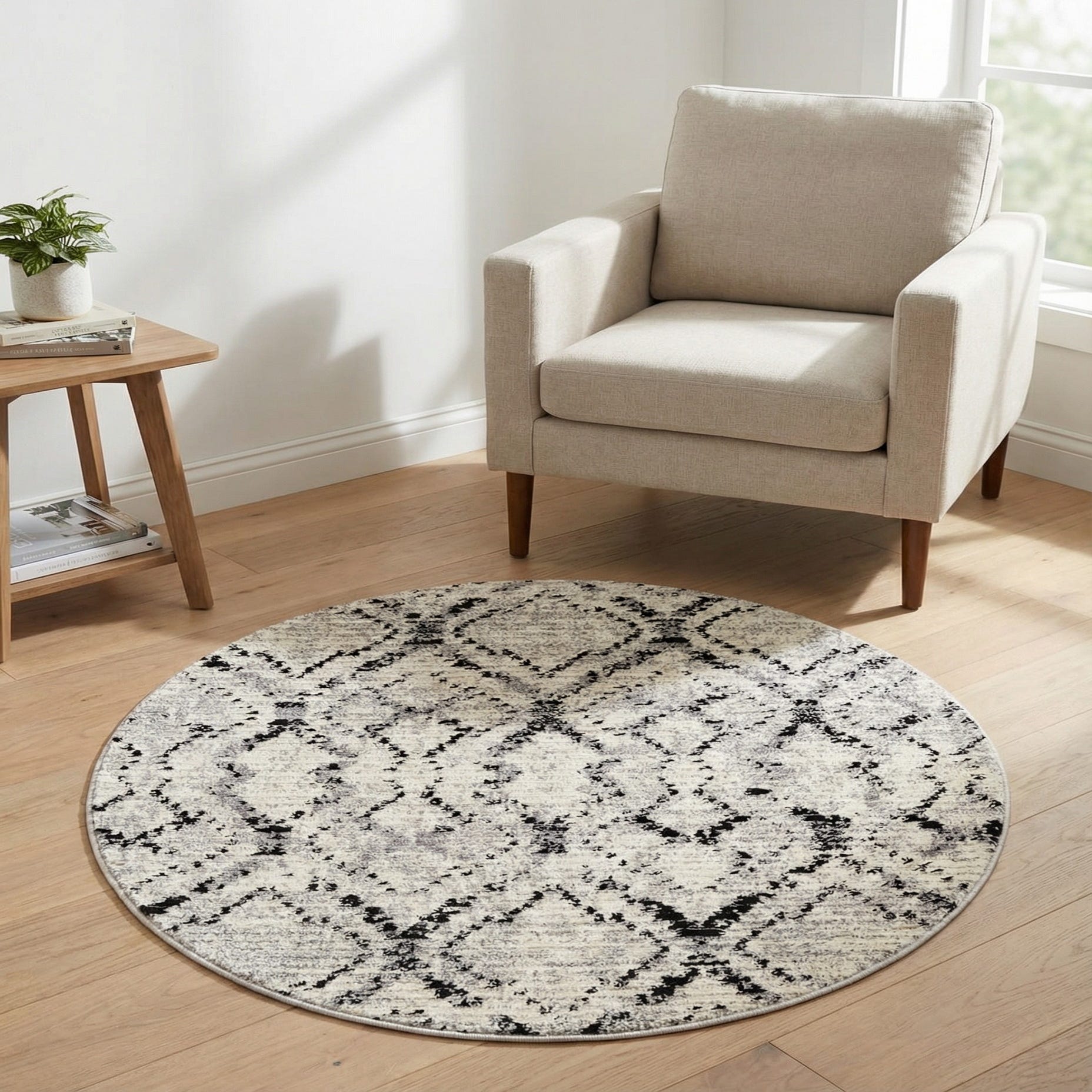 Primary color is Ivory. Colors in this rug include: Ivory, Black, Gray.