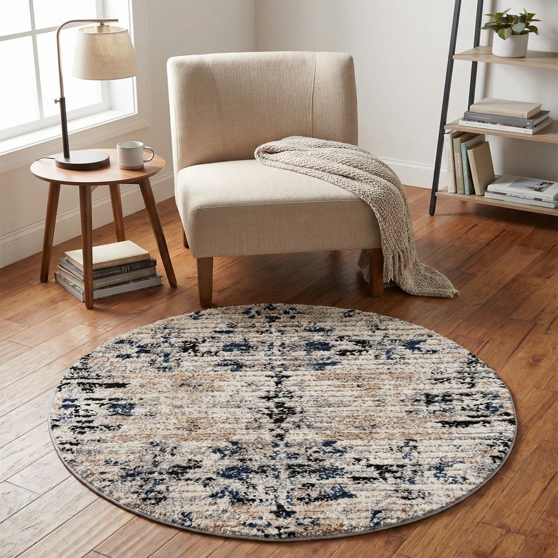 Primary color is Ivory. Colors in this rug include: Ivory, Beige, Black, Blue.