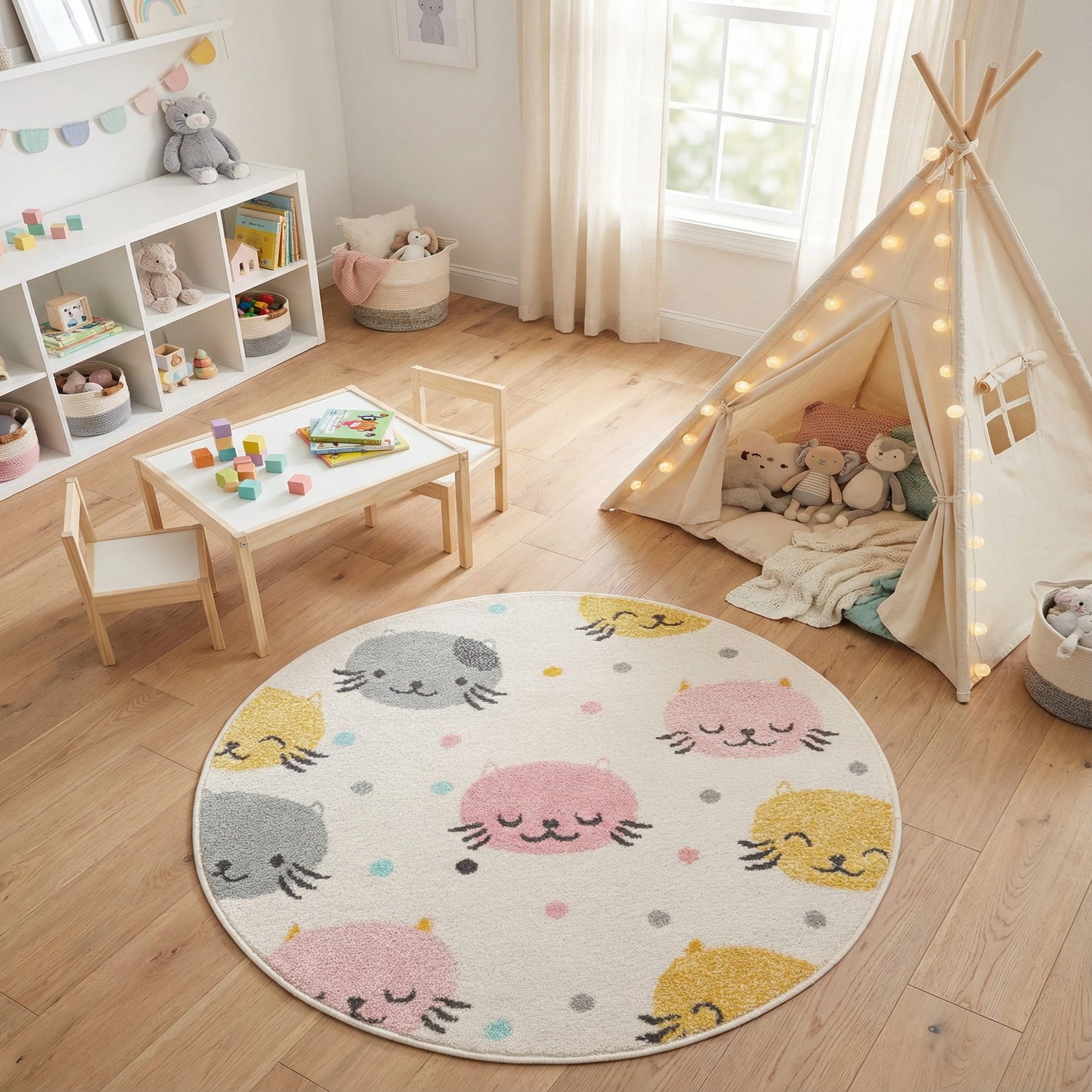 Detail image of 3' 3 x 3' 3 Cats Whimsy Kids Round Rug