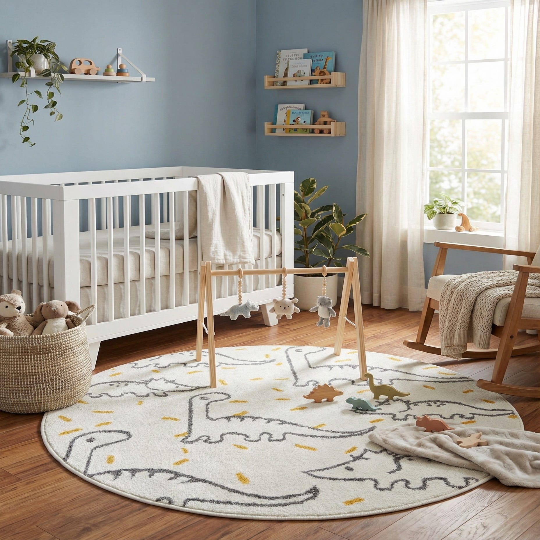 3' 3 x 3' 3 Dinosaur Whimsy Kids Round Rug
