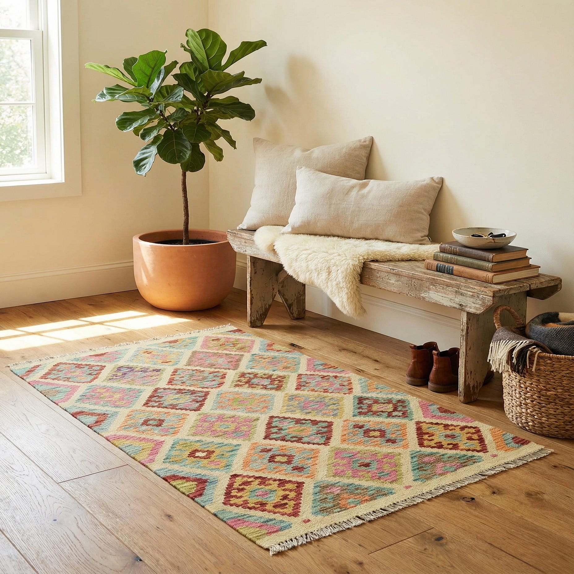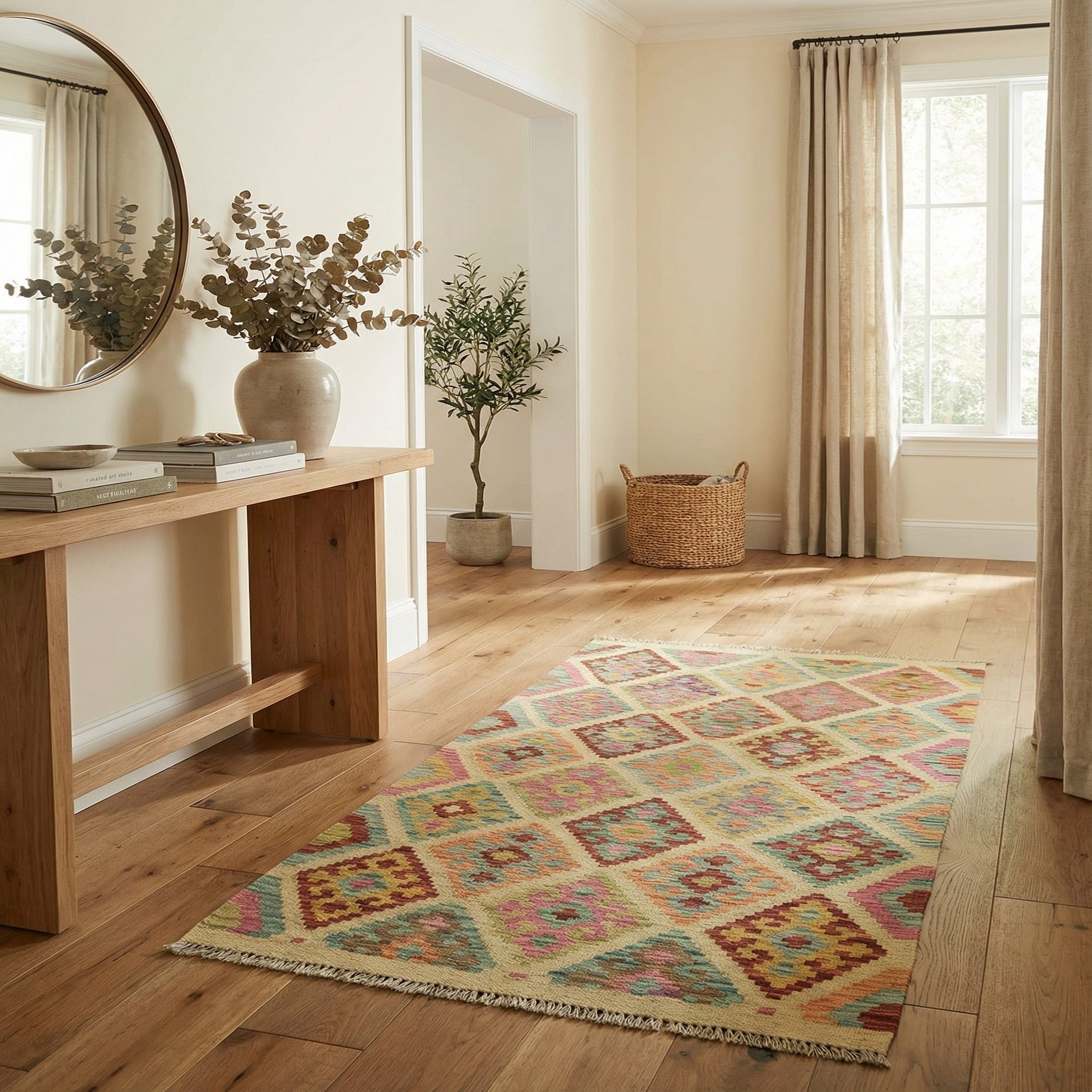 3' 2 x 4' 9 Hand Woven Kilim Maymana Wool Rug