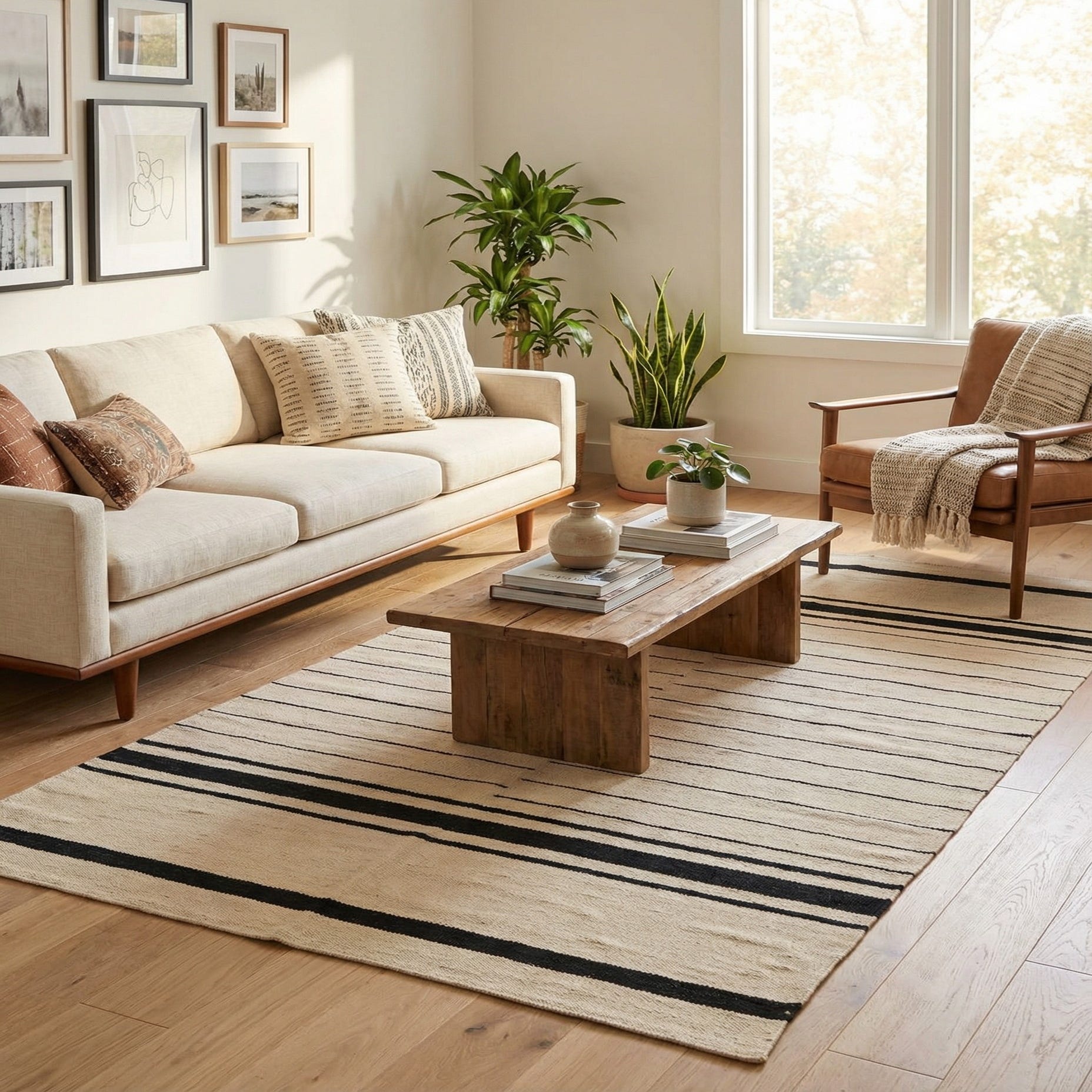 Primary color is Ivory. Colors in this rug include: Ivory, Black.
