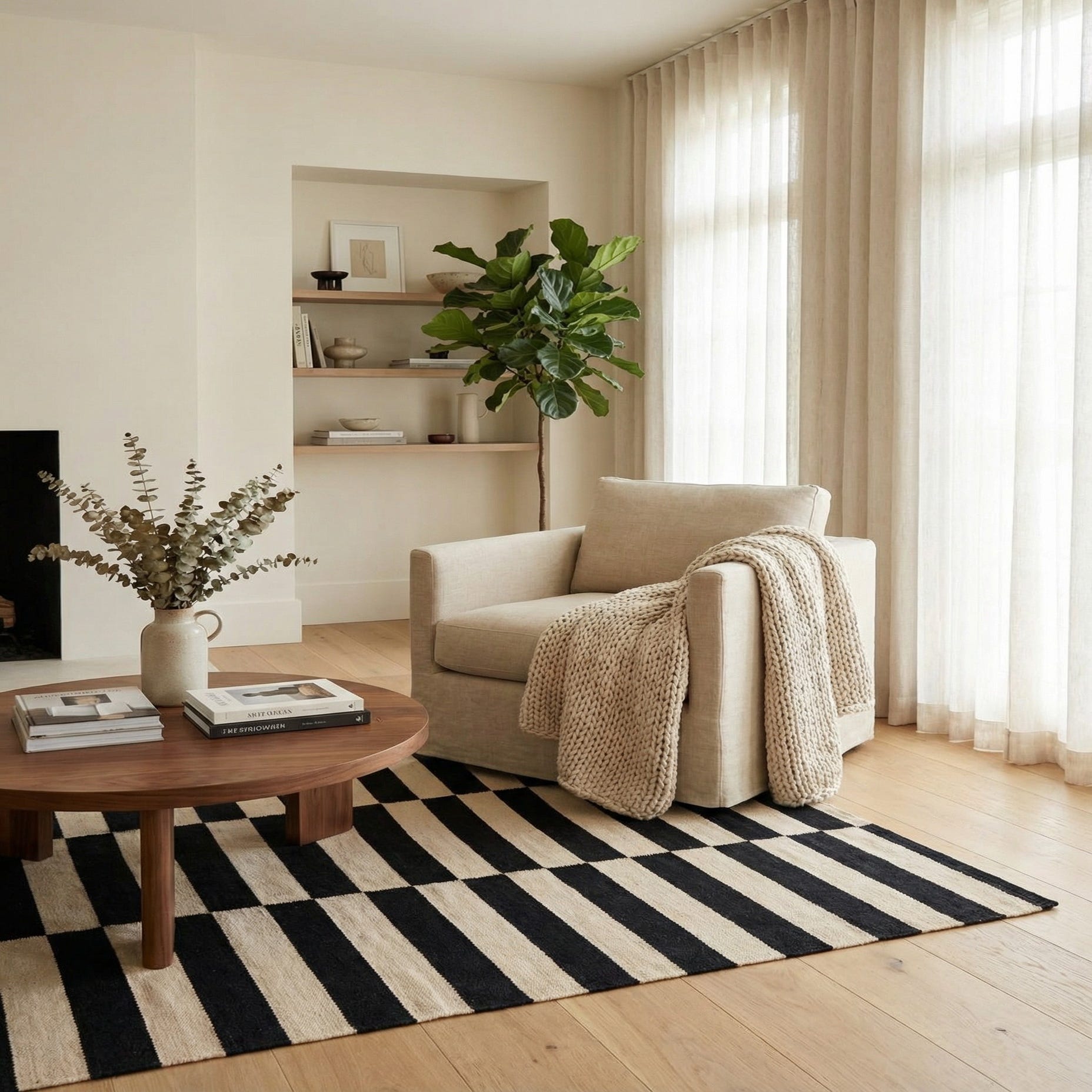Primary color is Ivory. Colors in this rug include: Ivory, Black.