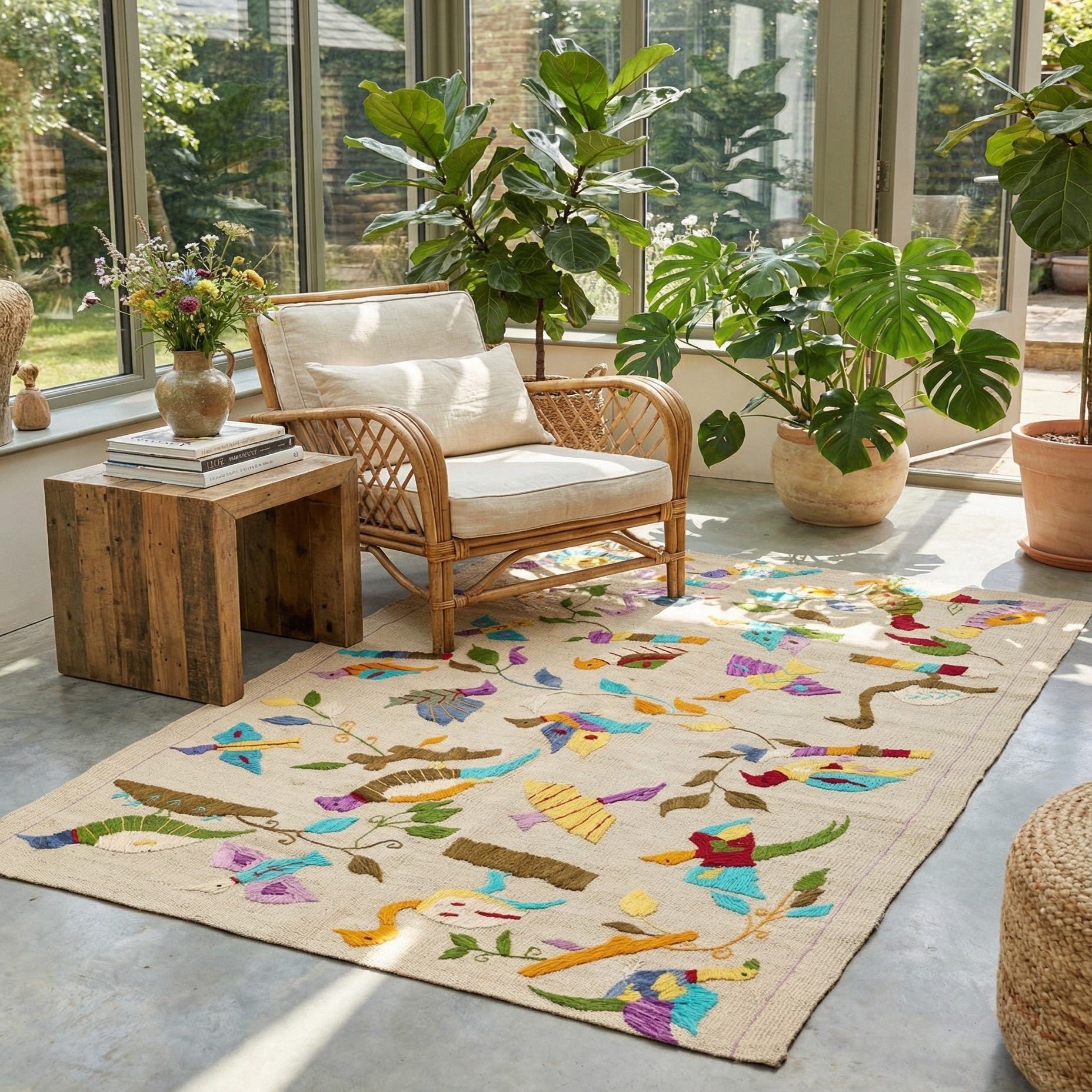 Detail image of 3' 2 x 4' 7  Hand Woven Kilim Suzani Wool Rug