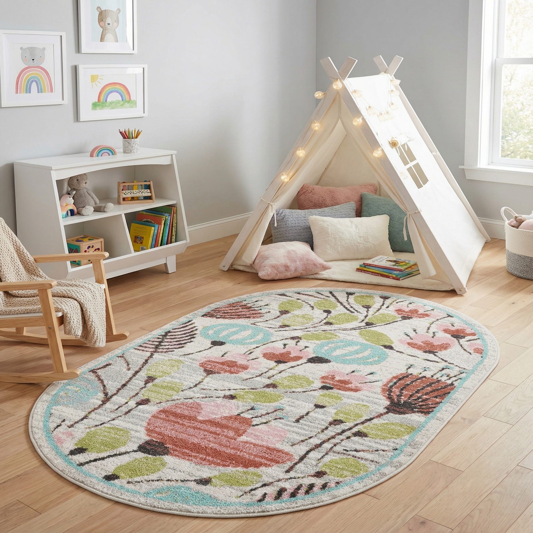 3' 3 x 5' 3 Flowers Whimsy Kids Oval Rug