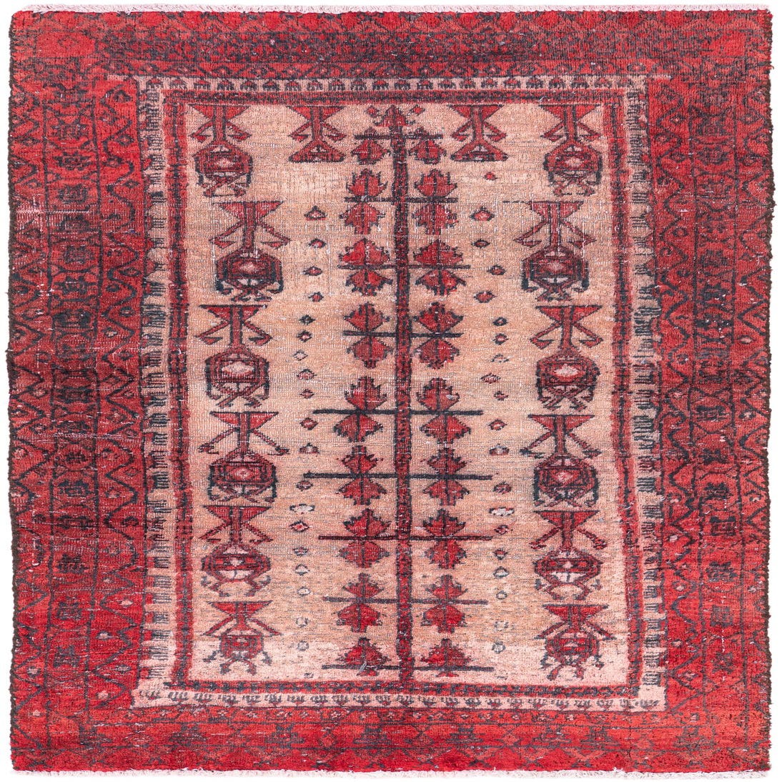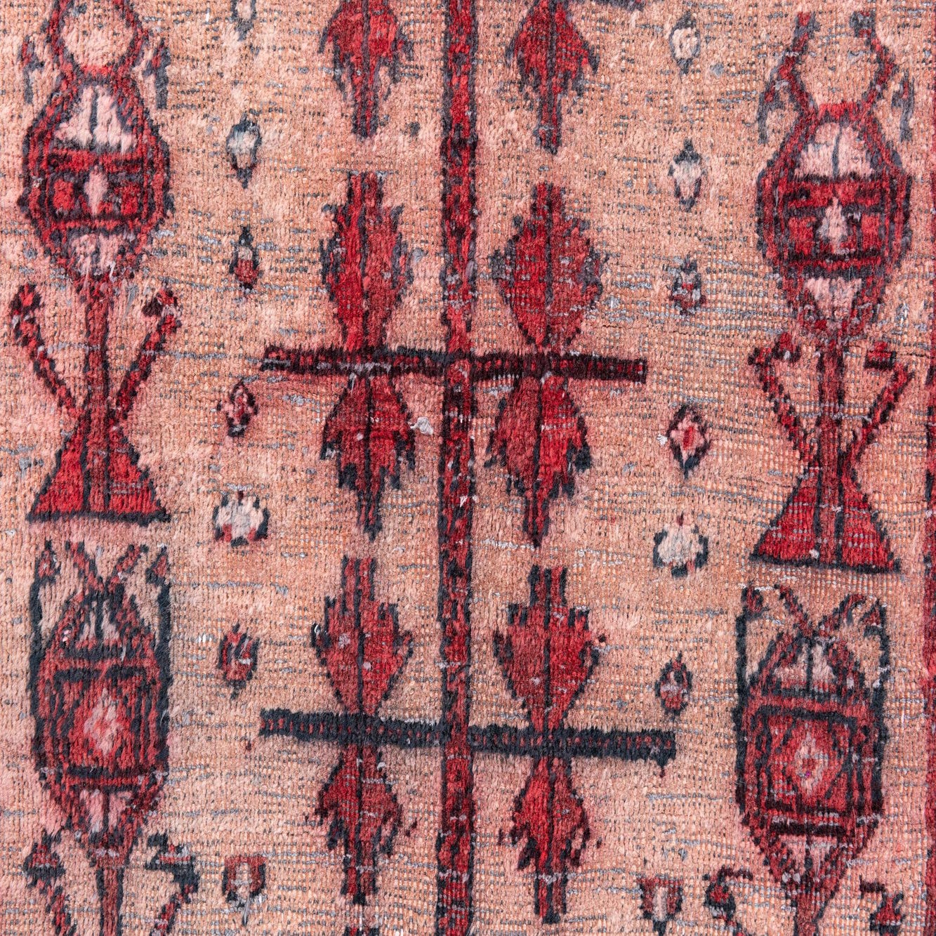 This Persian Ultra Vintage rug is an antique Persian Rug that has been washed, over-dyed, and then shaved down to a low pile. Look at the detail pictures to fully appreciate the uniqueness of this piece.