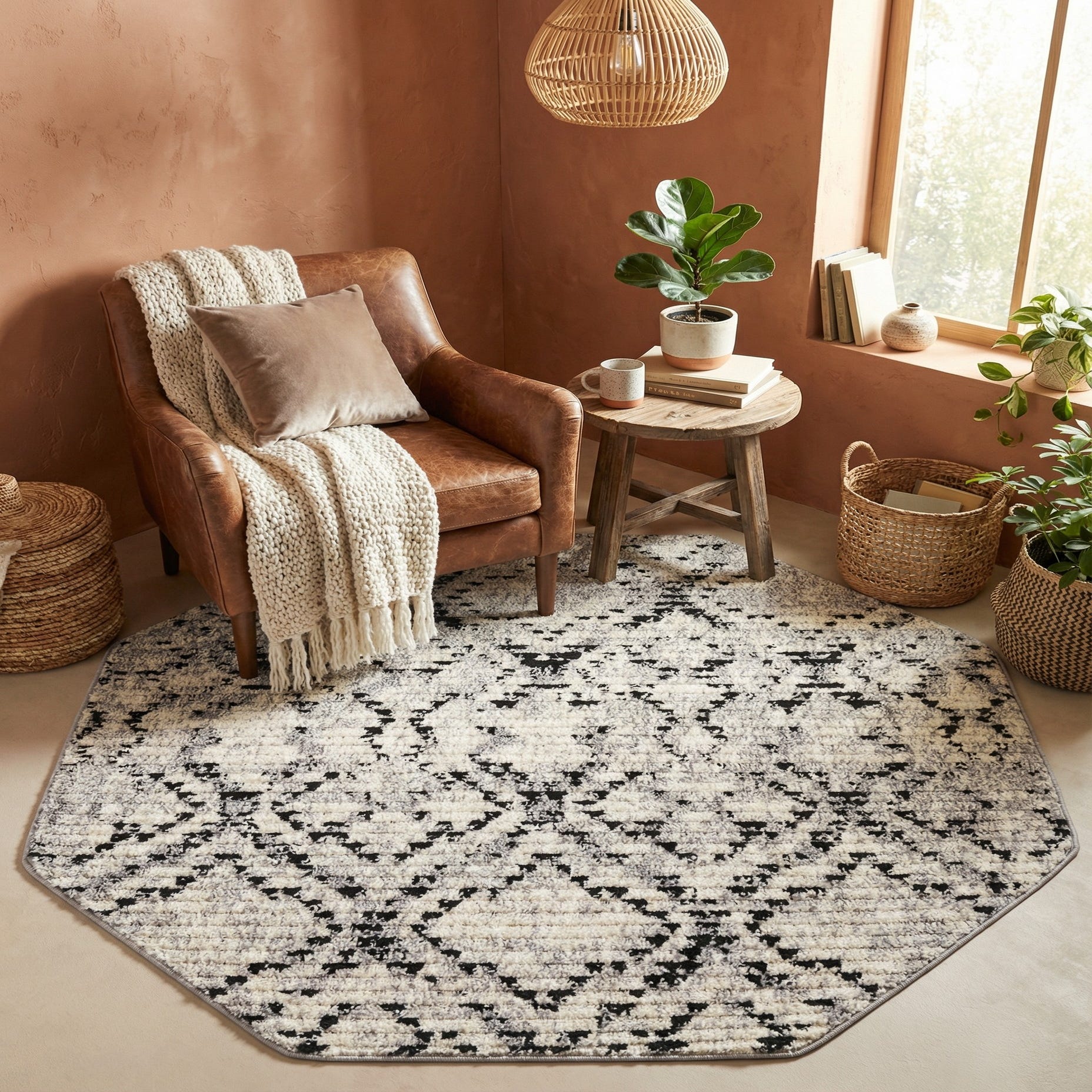 Primary color is Ivory. Colors in this rug include: Ivory, Beige, Black, Gray.