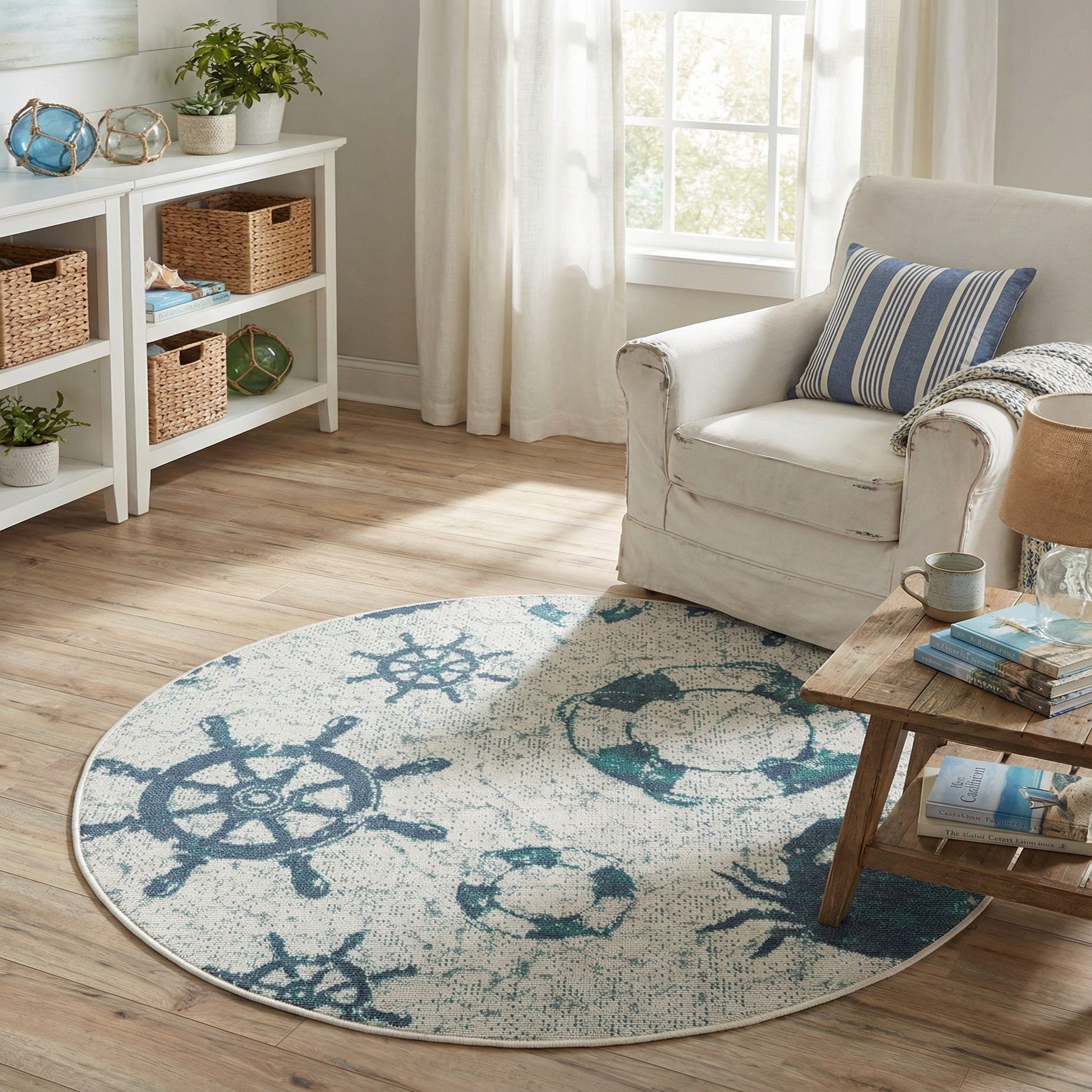 Primary image 4' x 4'  Washable Coastal Indoor / Outdoor Round Rug