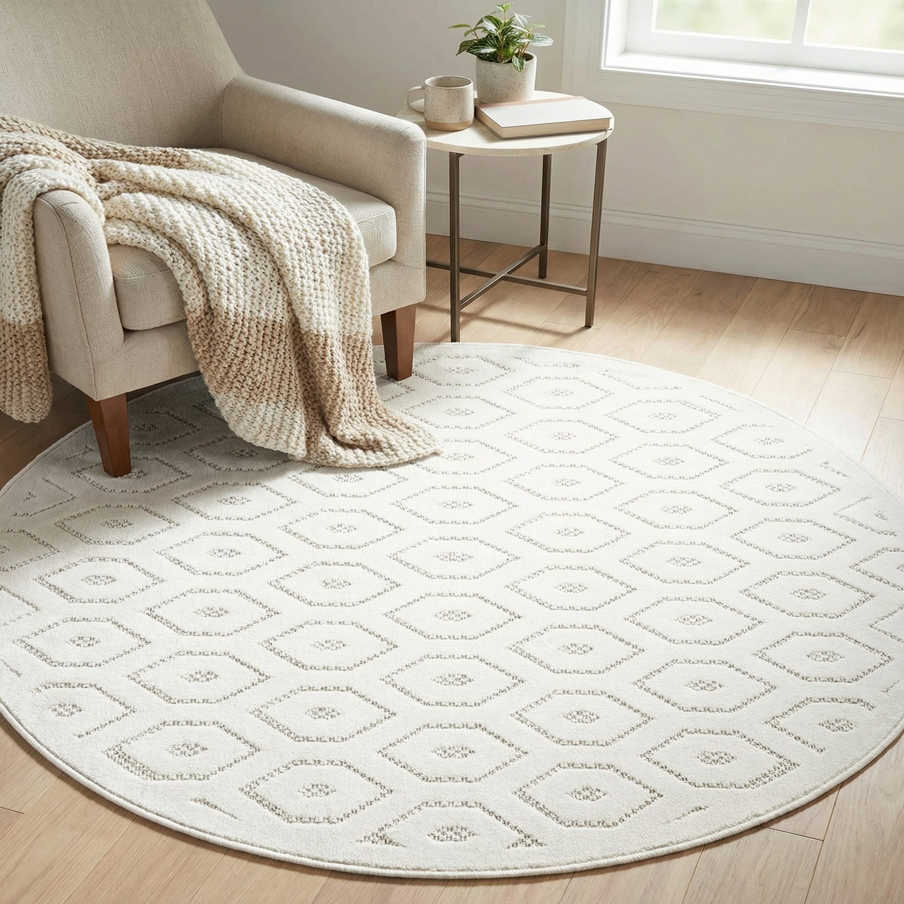 4' x 4' Washable Trellis Textured Indoor / Outdoor Round Rug