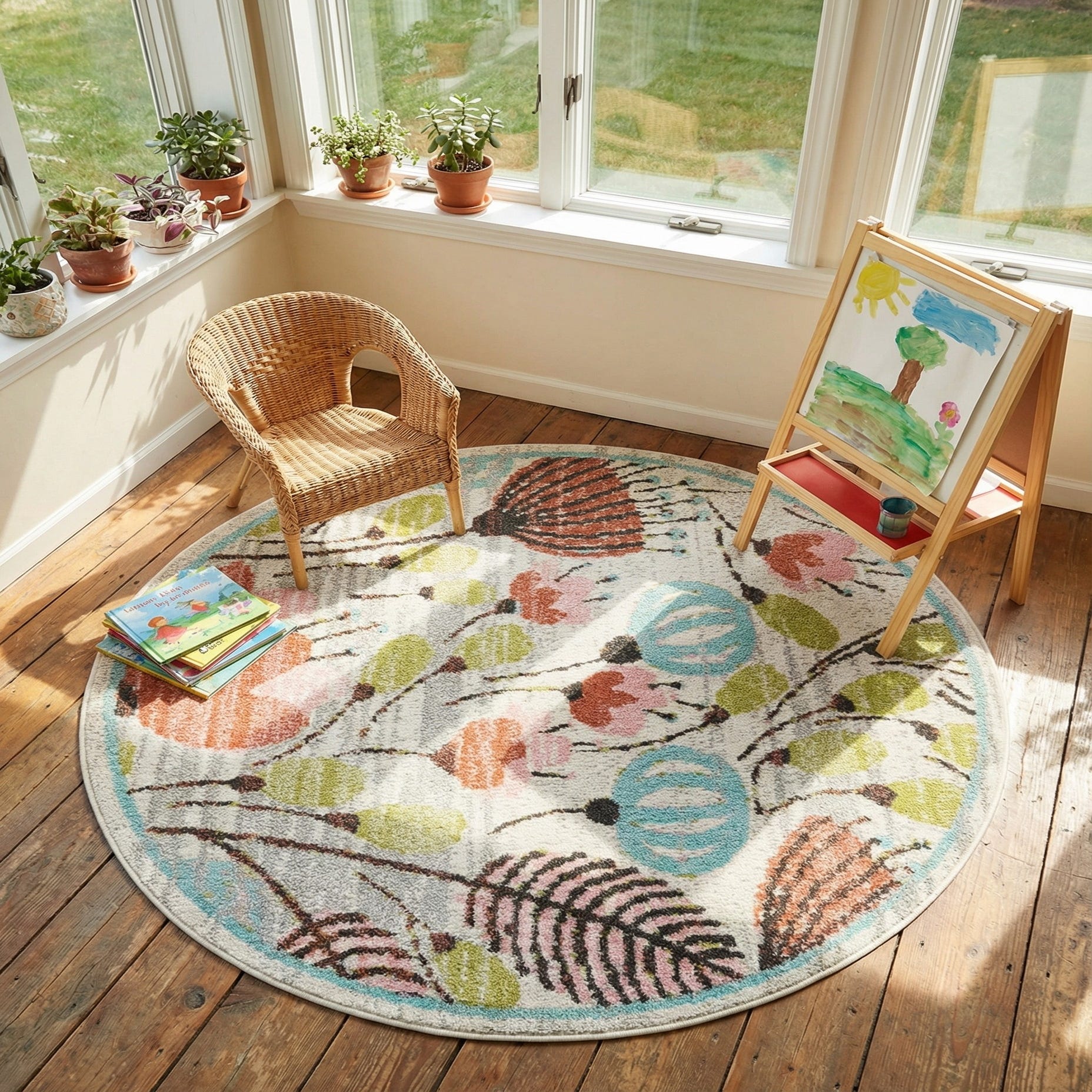 4' 1 x 4' 1 Flowers Whimsy Kids Round Rug