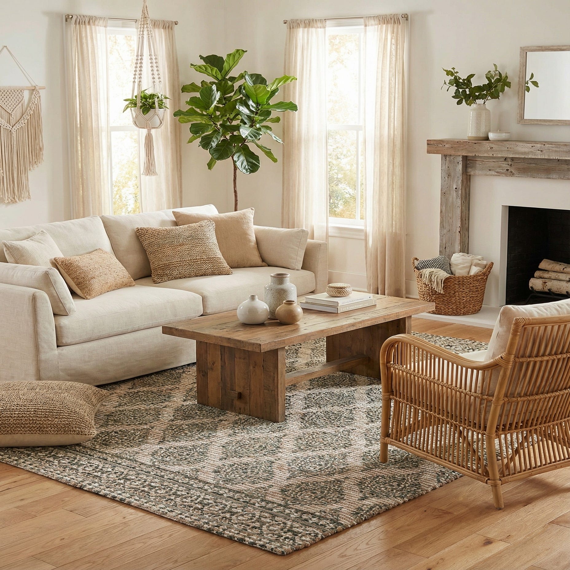 Primary color is Ivory. Colors in this rug include: Ivory, Green, Natural.